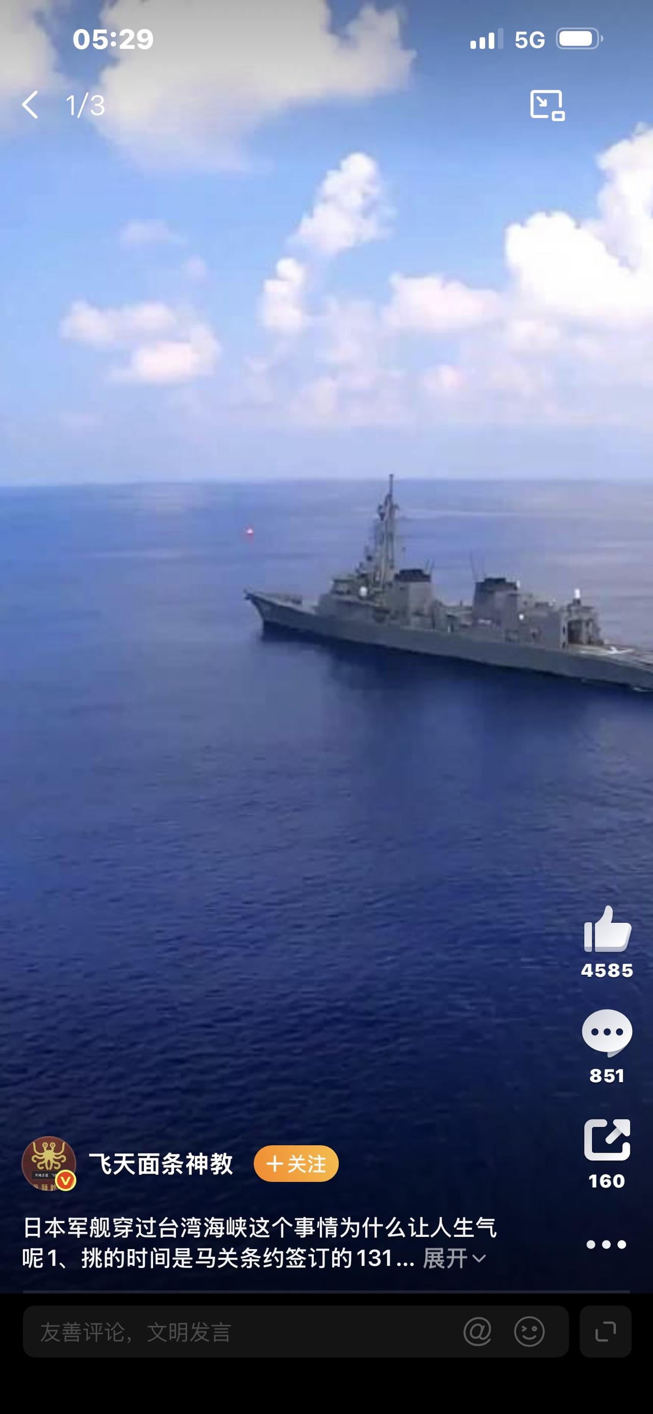 更恶心的是时机——偏偏选在《马关条约》签订纪念日!当年它靠条约强占台湾50年,烧杀抢掠无恶不作;如今又在这天派军舰窜台海,明摆着是挑衅主权、给"台独"撑腰,旧仇未报又添新恨!
