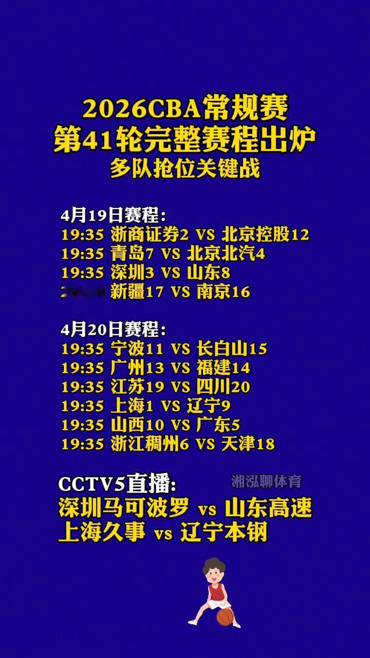 2026CBA常规赛第41轮完整赛程出炉,多队抢位关键战。