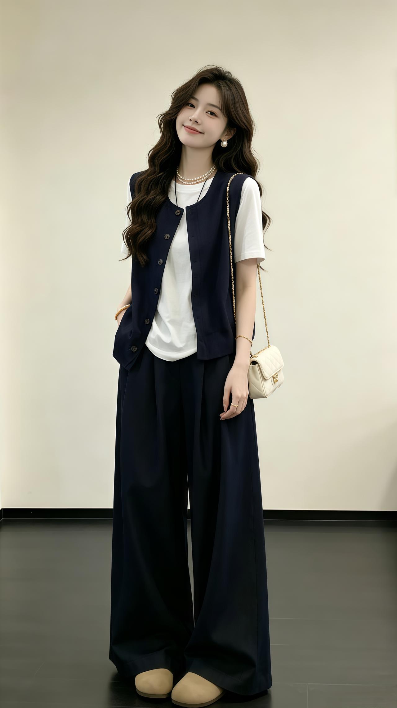回头率超高的时髦老钱风!这组大地色系穿搭太绝了,浅咖针织Polo衫搭配藏青阔腿