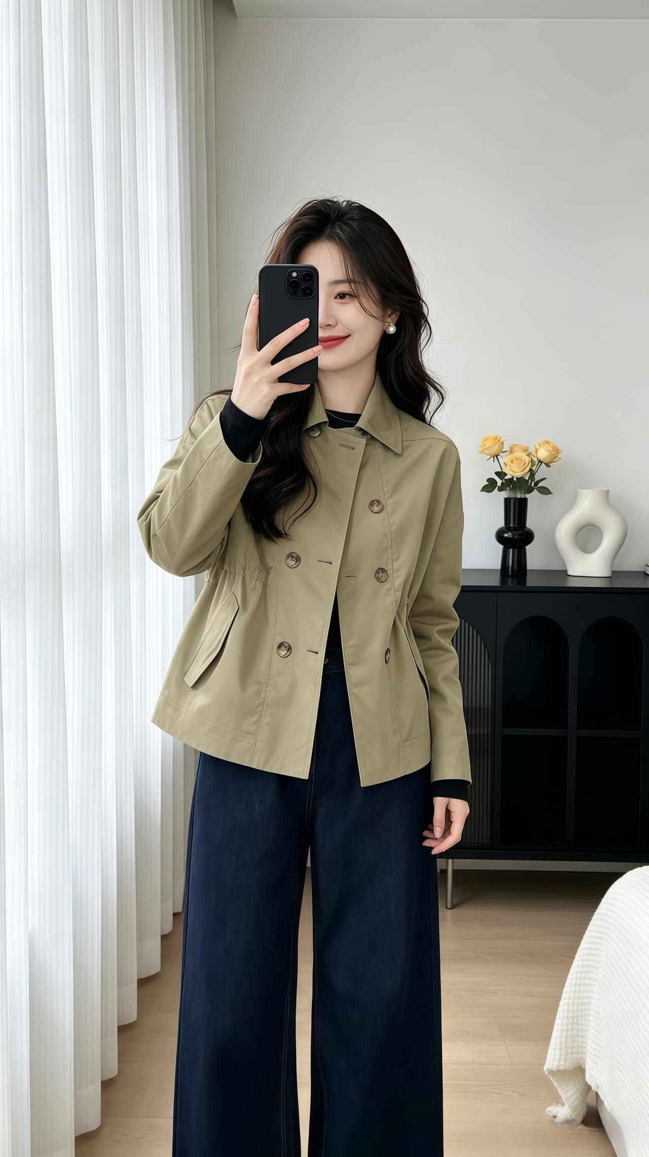 显瘦短款风衣外套 通勤短款外套 气质穿搭穿搭今天穿什么