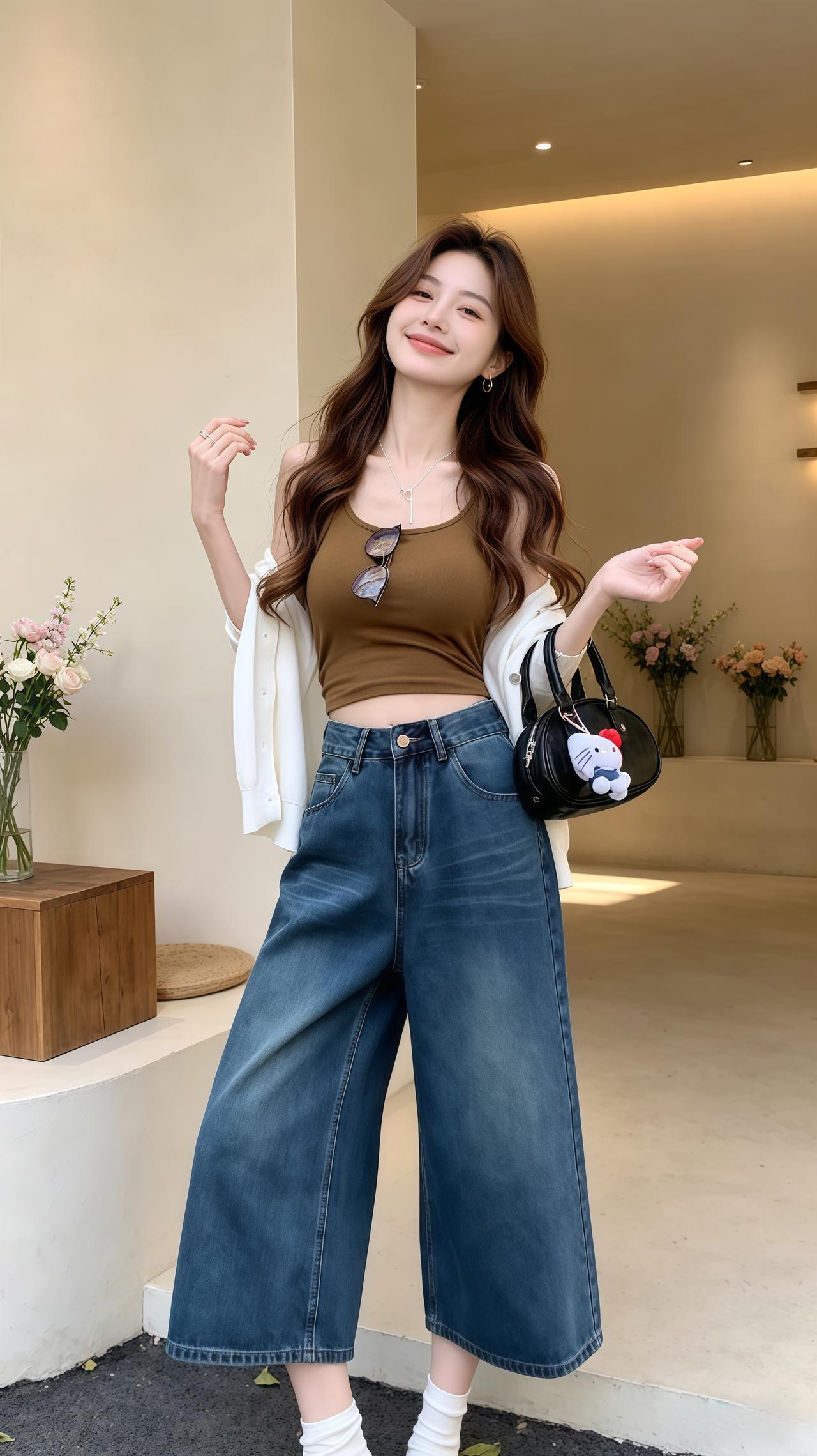 牛仔裤 阔腿牛仔裤辣妹穿搭 夏季穿搭穿搭今天穿什么