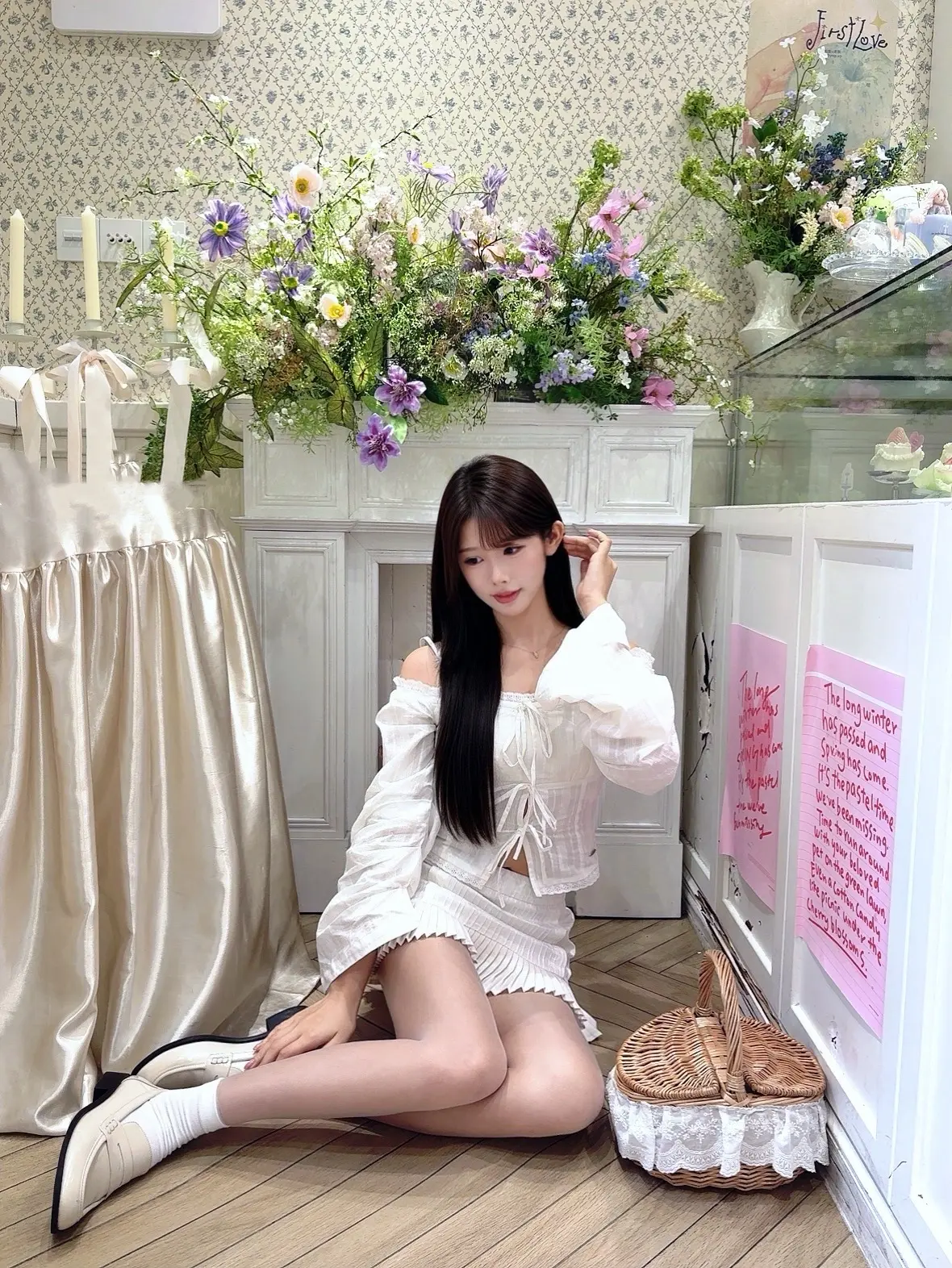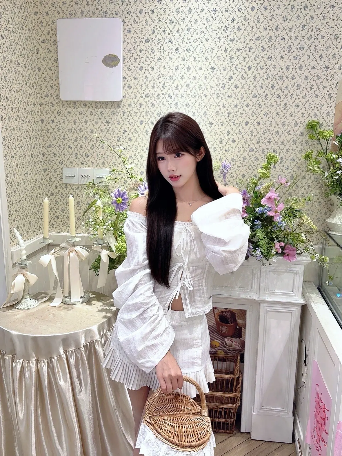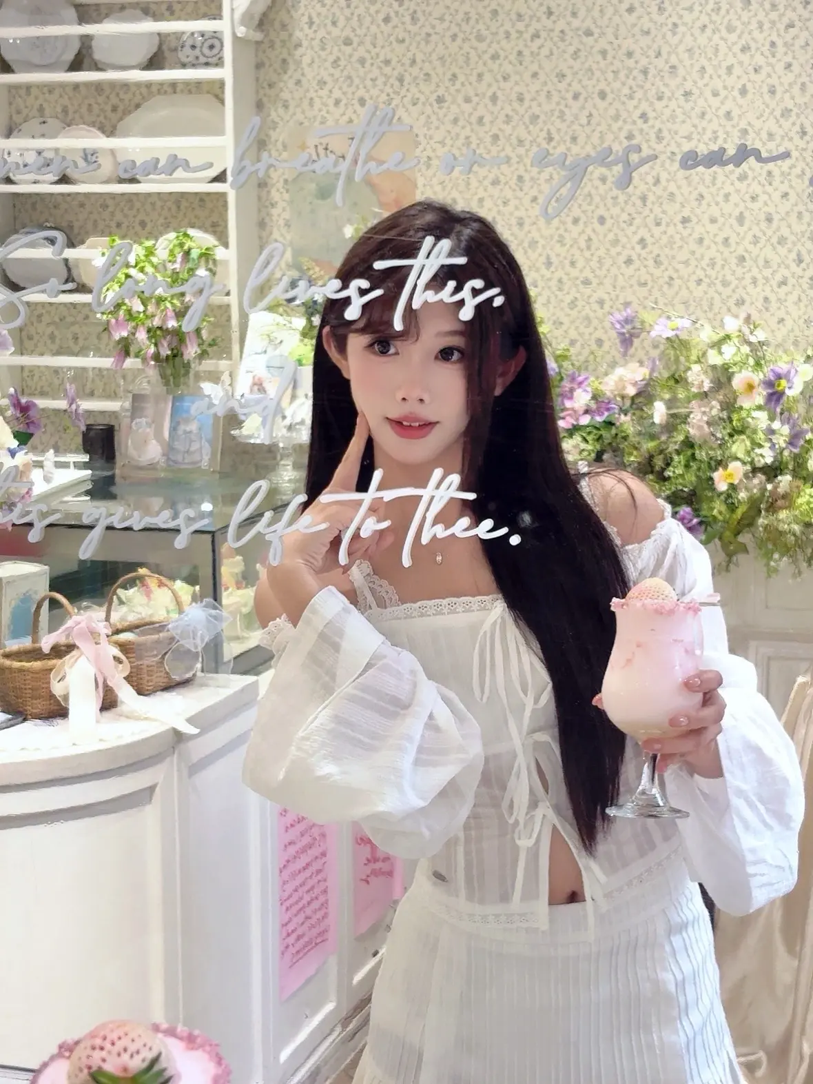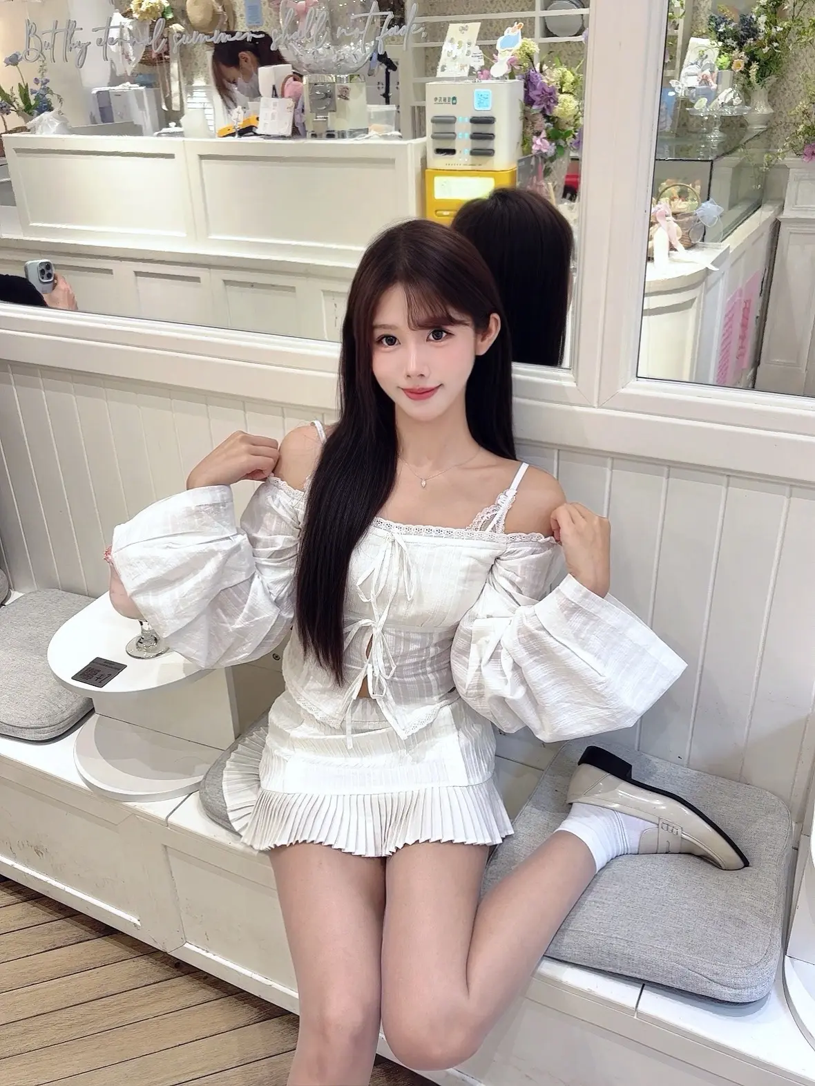 🤍。存一组甜妹拍照姿势~ 纯白套装清纯感满满