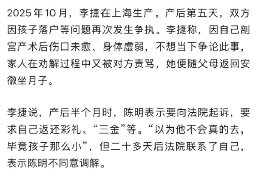 男方要求女方退所有的彩礼和三金钱(哦还有全部奶粉钱,我天呐),以及分担一半的产检、分娩、请月嫂的费用。