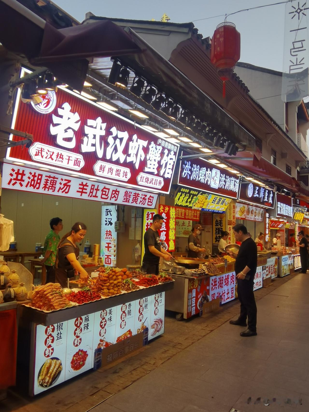 干炒螺蛳、洪湖莲藕汤、热干面、三鲜豆皮、卤猪蹄等美食,令人目不暇接。