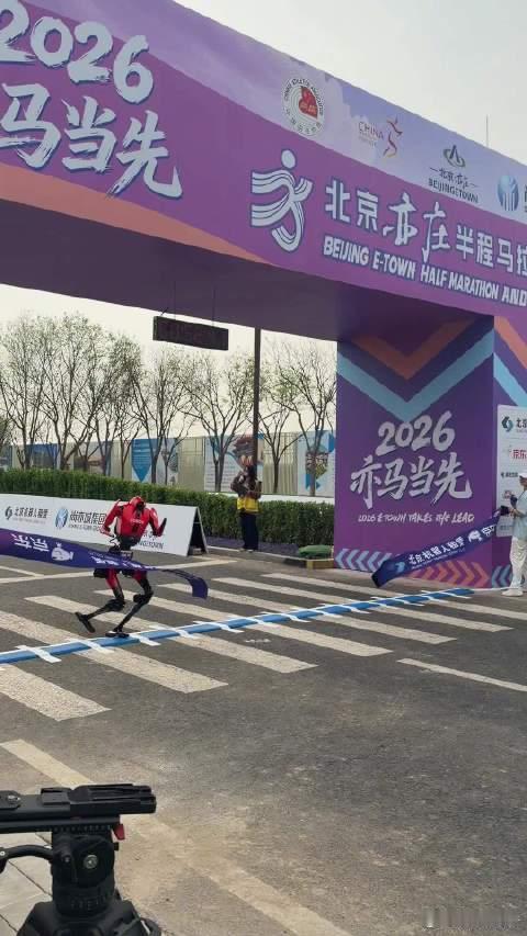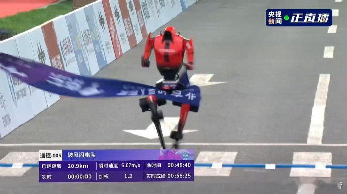 荣耀机器人首次参赛就夺冠4月19日,北京亦庄机器人半马,荣耀绝影赤兔队机器人“闪