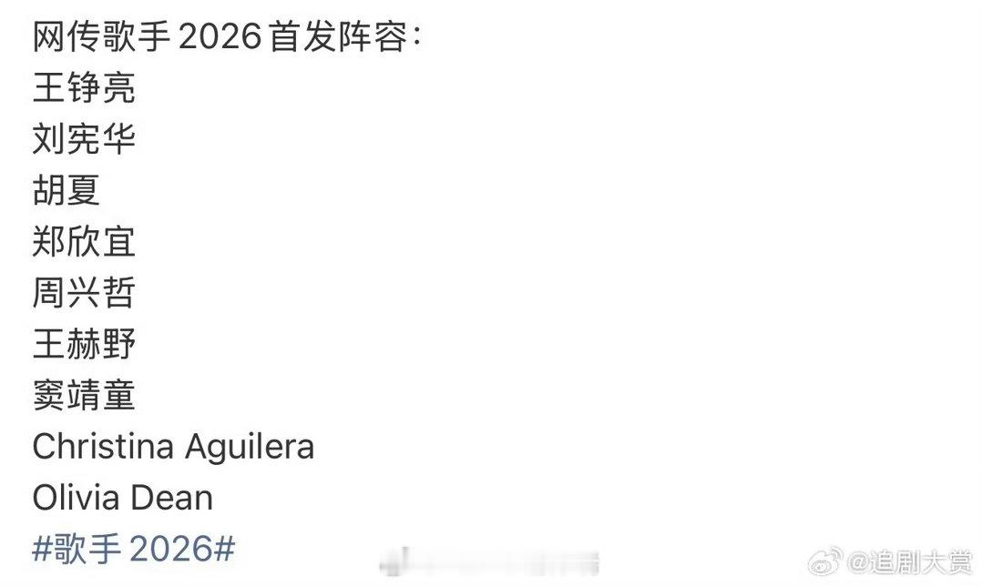 曝歌手2026阵容目前网上传的阵容版本太多,真假难辨,大家还是理性吃瓜,耐心等官方官宣吧~毕竟不到最后一刻,谁也说不准最终会有哪些歌手登场。不管是实力老将还是新生代唱将,只要舞台够精彩就值得期待!你们最希望在节目里看到哪位歌手?