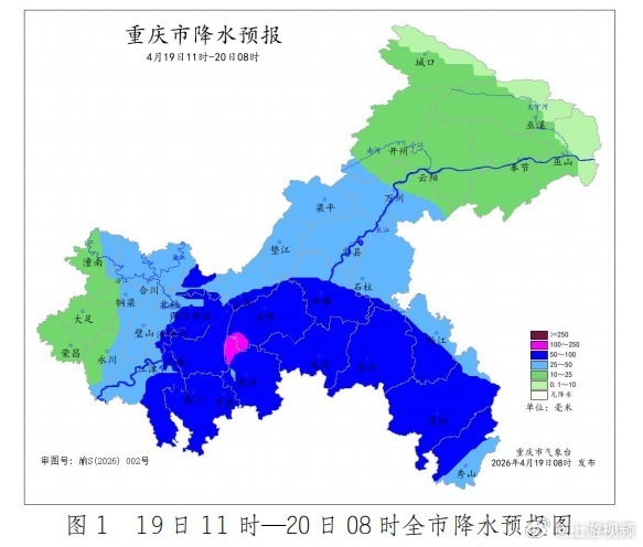 19日上午(19日08~11时),各地多云到晴,午后到夜间(19日11时~20日08时),自西向东陆续出现阵雨或雷雨,雨量中到大雨,部分地区暴雨(50~70毫米),个别地区大暴雨(100~120毫米),雷雨时伴有7~9级阵性大风,局地有冰雹,气温12~34℃;中心城区多云,午后到夜间有阵雨或雷雨,雨量中到大雨,局地暴雨,气温20~30℃。