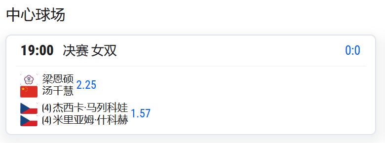WTA250赛鲁昂站,女双决赛,汤千慧/梁恩硕将与4号种子马列科娃/什科赫争夺冠军;