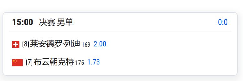 CH125釜山,布云朝克特将与8号种子瑞士球员列迪争夺男单冠军;