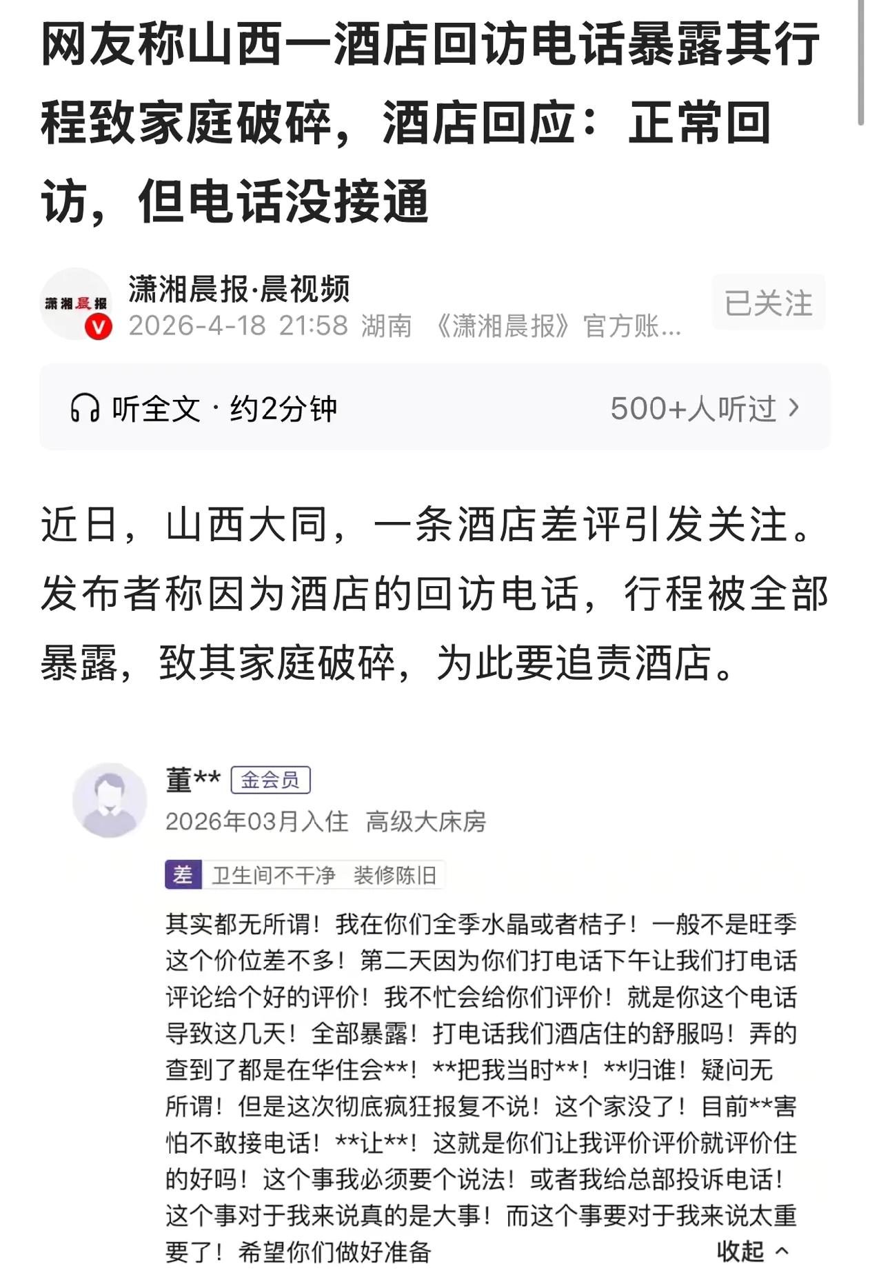 2026年3月,女子和情人一起住进了大同的桔子水晶酒店,本来想偷偷摸摸的,结果住完第二天下午,酒店打了个回访电话。