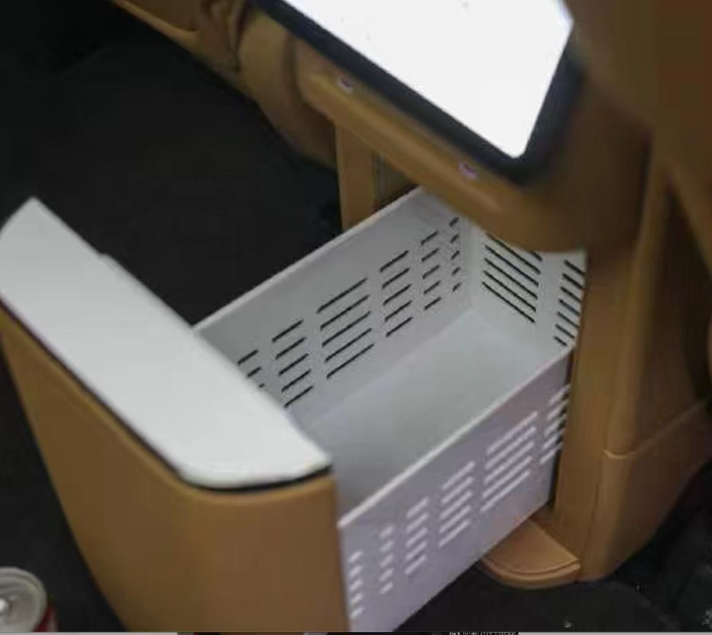尤其小鹏GX这个冰箱可以从后排拉开,也可以从前排Console armrest直接打开,所以是个双开门。而且内部分了上下层,温度有一些差别,适合放不同需求的东西,因此那个置物篮也需要留一个上部可左右开合的分隔盖。