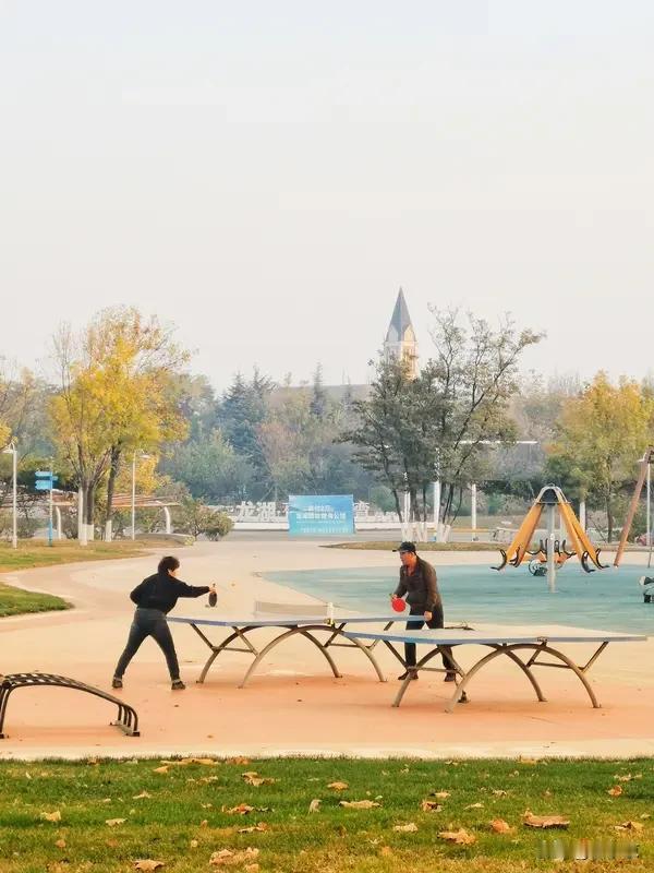 球台边老伙计们也都到齐了,不用多贵的球拍,也不用多好的球,挥上几拍,跑一跑出点汗,浑身都通透。打累了就站边上歇会儿,聊聊天,说说家常,晒着太阳暖烘烘的。