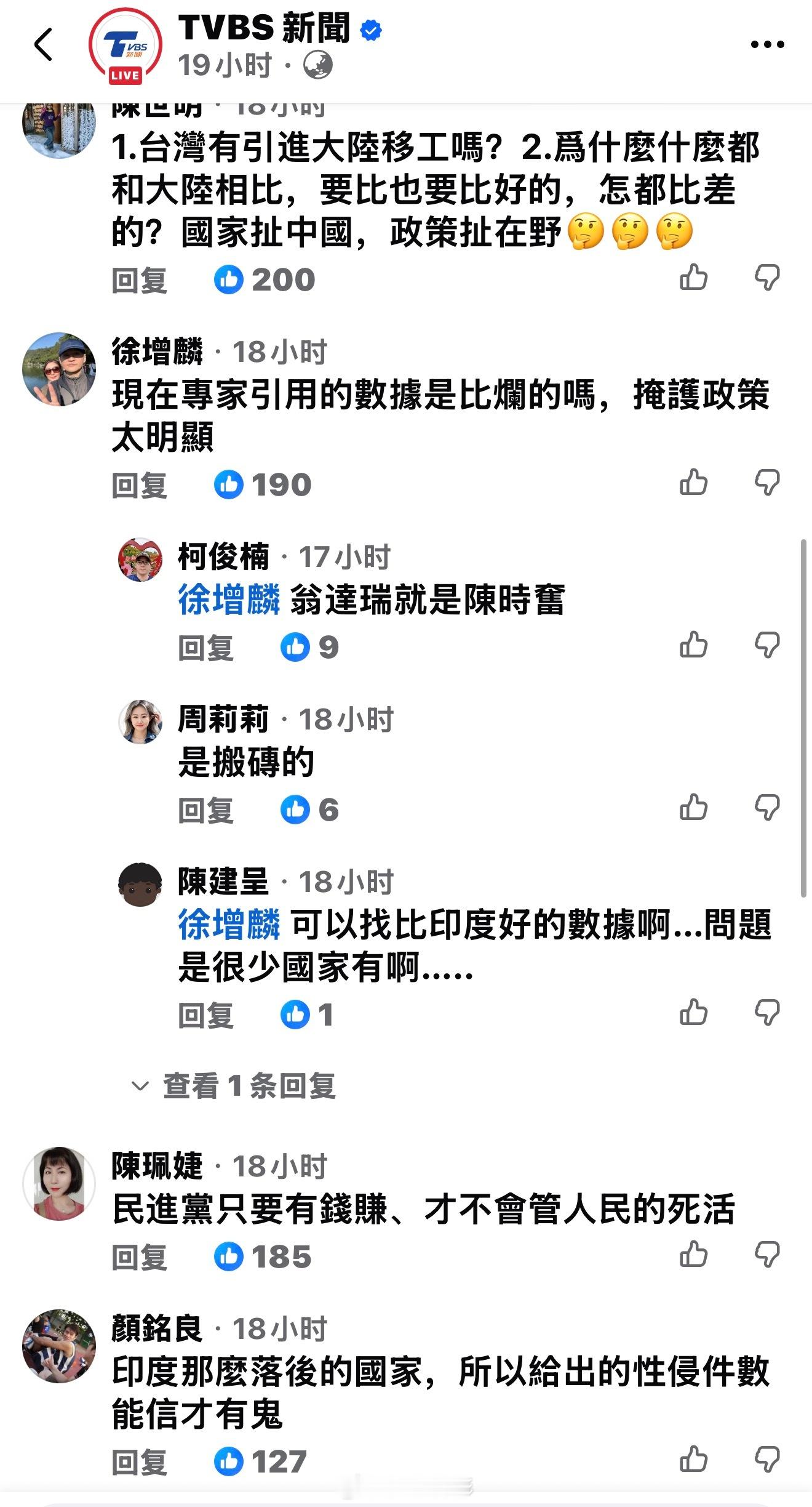 台湾省要引进大量印度劳工,引发台湾省会变“性侵岛”的担忧,台湾专家辩解称中国大陆一年强奸案“通报”比印度还多 9000 多件,想以此转移矛盾……结果评论区的台湾网民不买账…