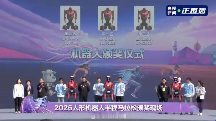 4 月 19 日,北京亦庄人形机器人半程马拉松颁奖仪式传来震撼消息——荣耀机器人战队大爆发,包揽冠亚季军!齐天大圣队以 50 分 26 秒夺冠,雷霆闪电队 50 分 56 秒获亚军,星火燎原队 53 分 01 秒斩获季军。这是荣耀机器人在人形机器人领域的首次公开亮相,便以碾压式实力惊艳全场,堪称“王炸”登场!🏃♂️💥