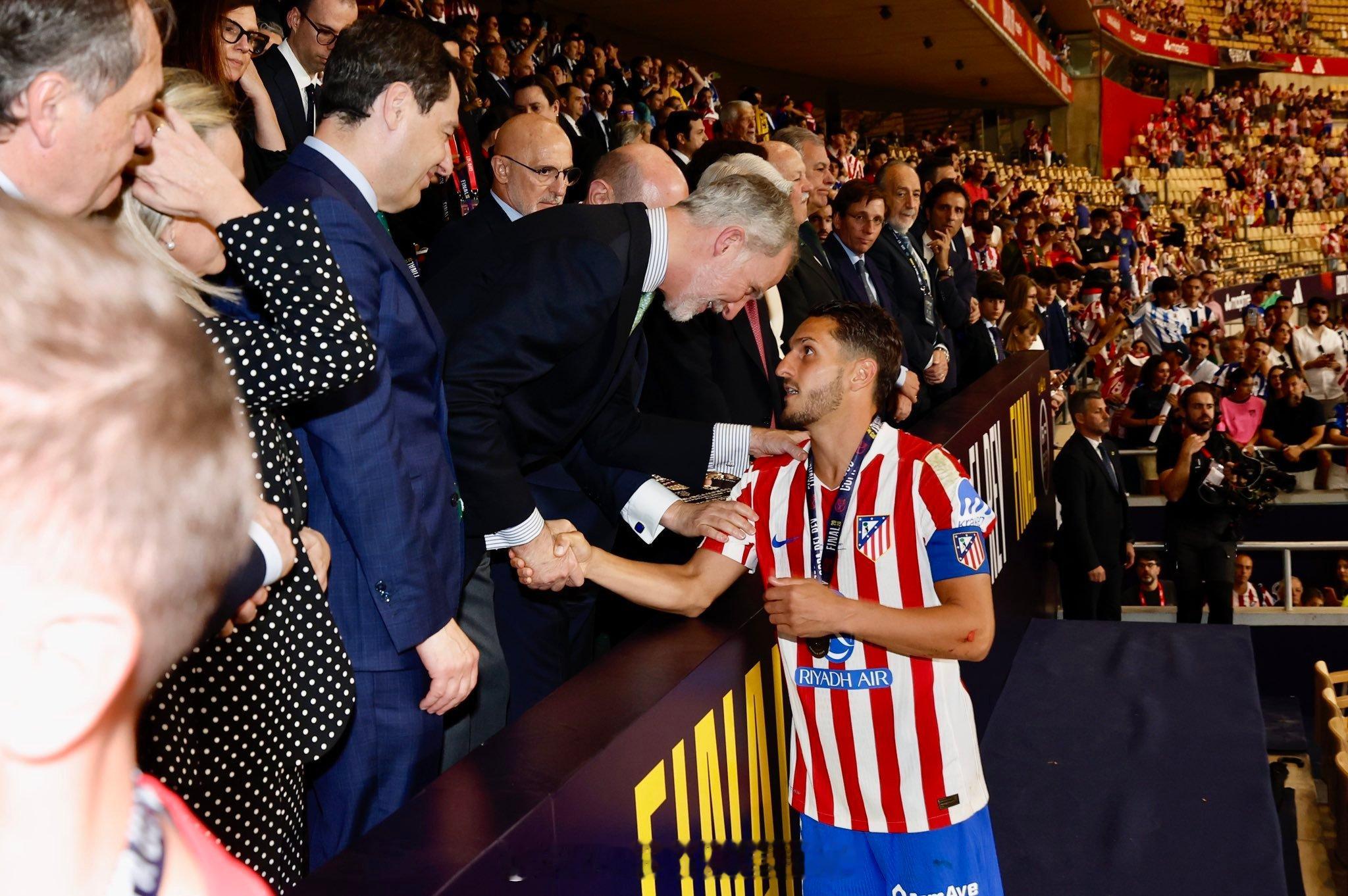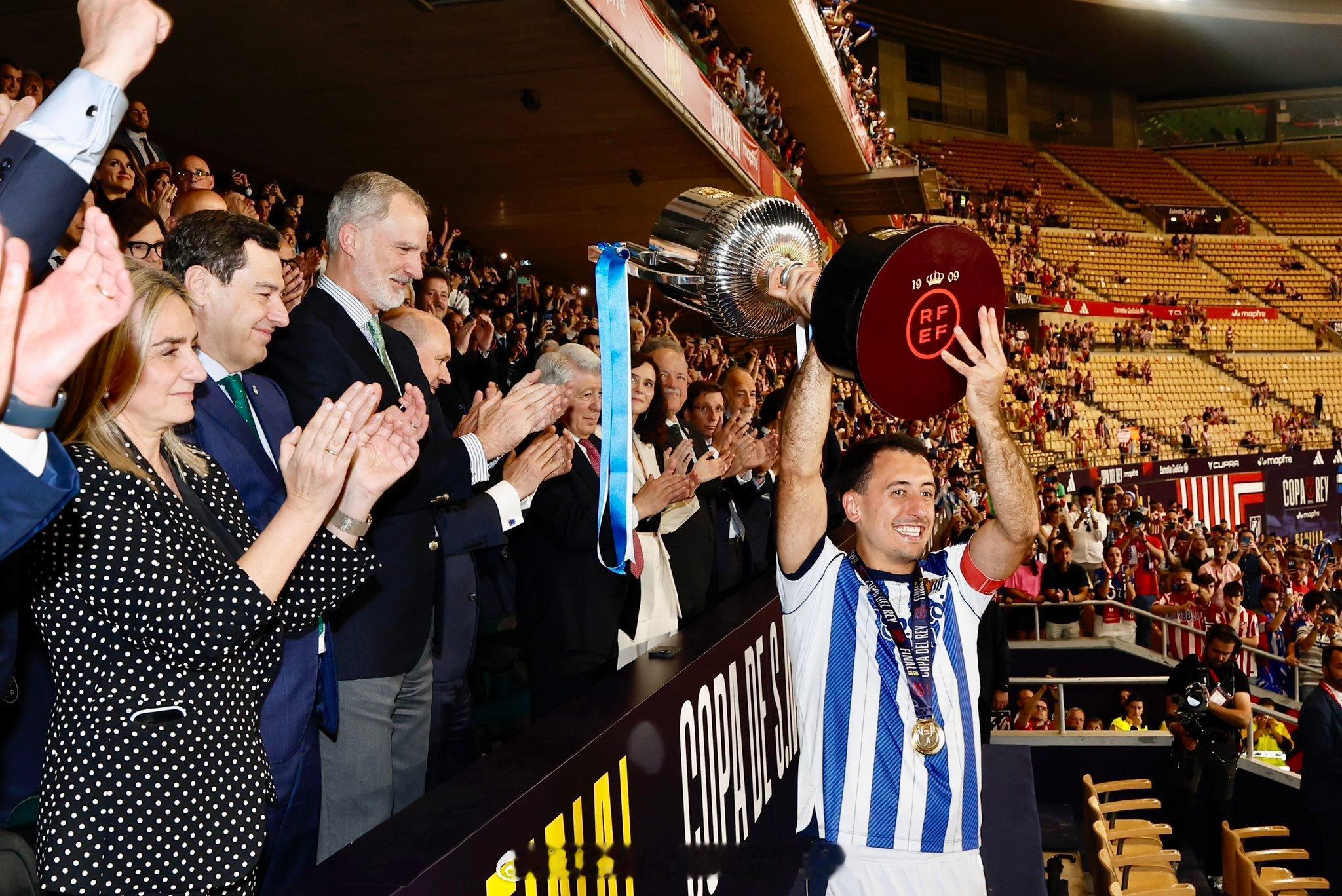 西班牙王室 4月18日,国王杯决赛皇家社会VS马竞的比赛在塞维利亚卡图哈球场举行,西班牙国王费利佩六世现身支持,恭喜皇家社会赢得国王杯冠军奖杯🏆