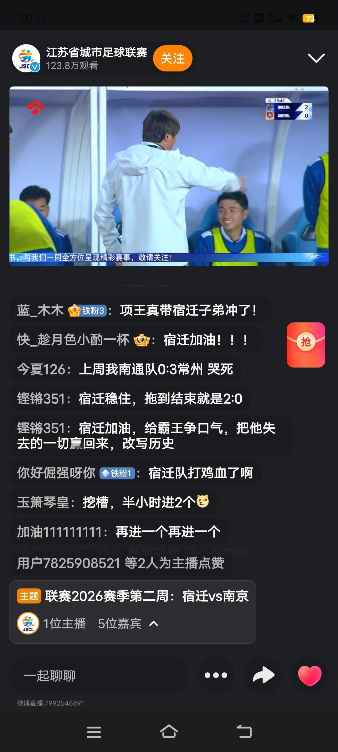 苏超直播何润东,没白来,宿迁队2比0领先南京队。