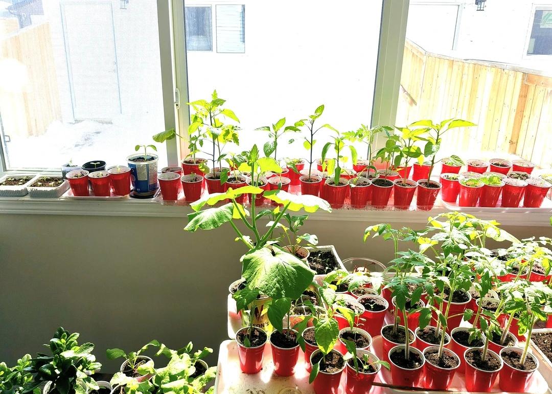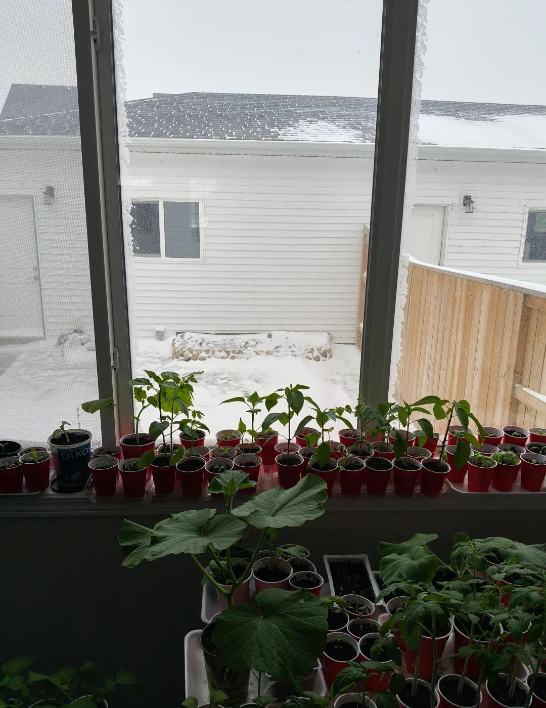 花苗菜苗已经好大了,盼着天气转好,气温升高,赶快移植到地里。等来却是白雪覆盖。