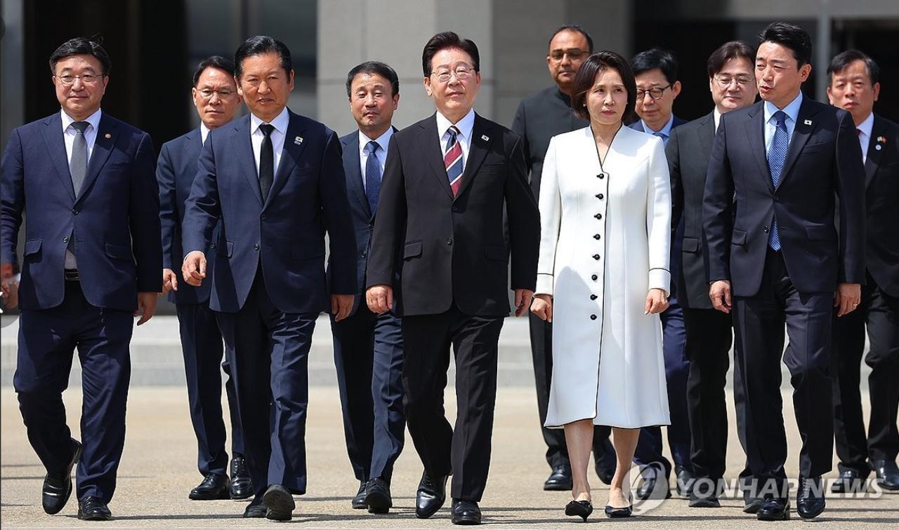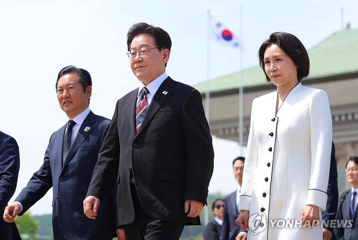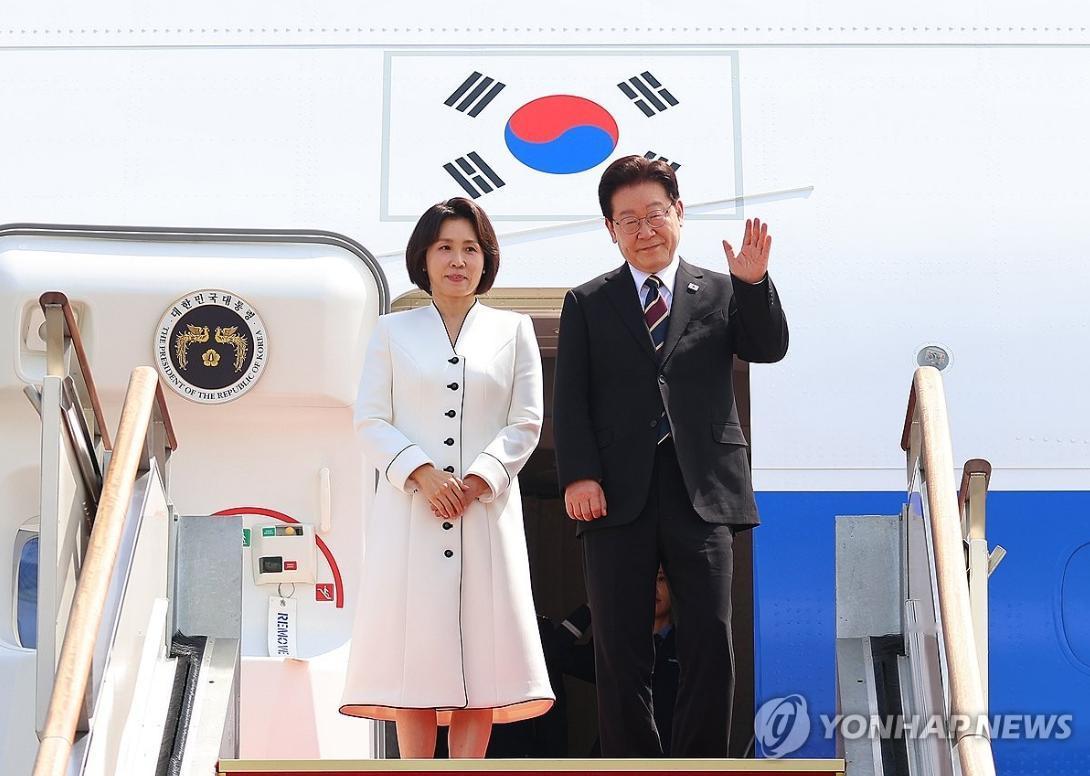 这对夫妻还真是形影不离,不管是出访还是在韩国国内出席活动都同时亮相;夫人一袭白风衣,挽着李在明的胳膊登机,为严肃的外交场合添上了一抹柔和暖意,这不刻意的互动,是藏着数十年相伴的信任与温情。
