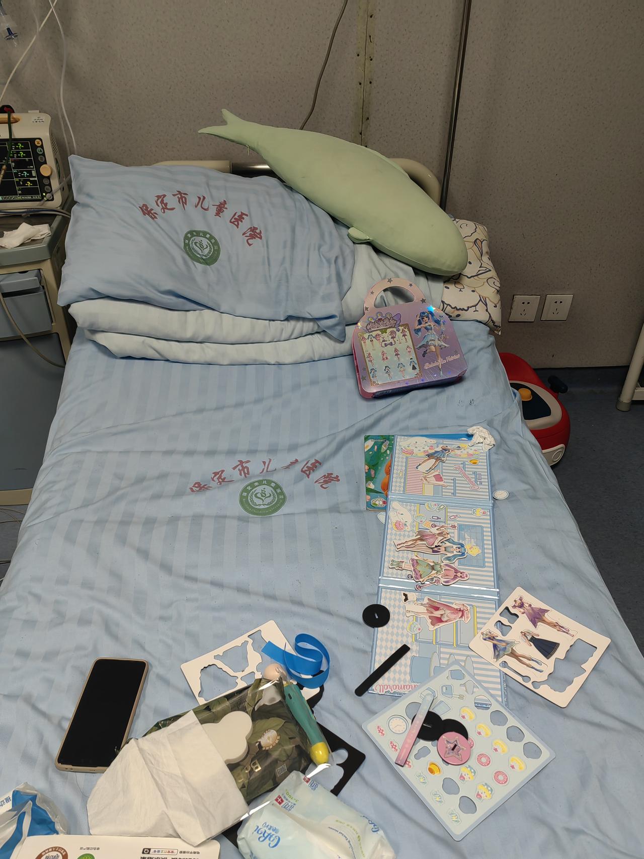 最后,要给儿童医院,给所有的儿童医院提一个建议,那就是把儿童的病床做的宽一点,这么窄的床睡上一个孩子和一个大人非常的不舒服,尤其是大人,一宿下来非常累,又怕蹭到孩子,又怕孩子在睡梦中摸不到自己而哭闹。
