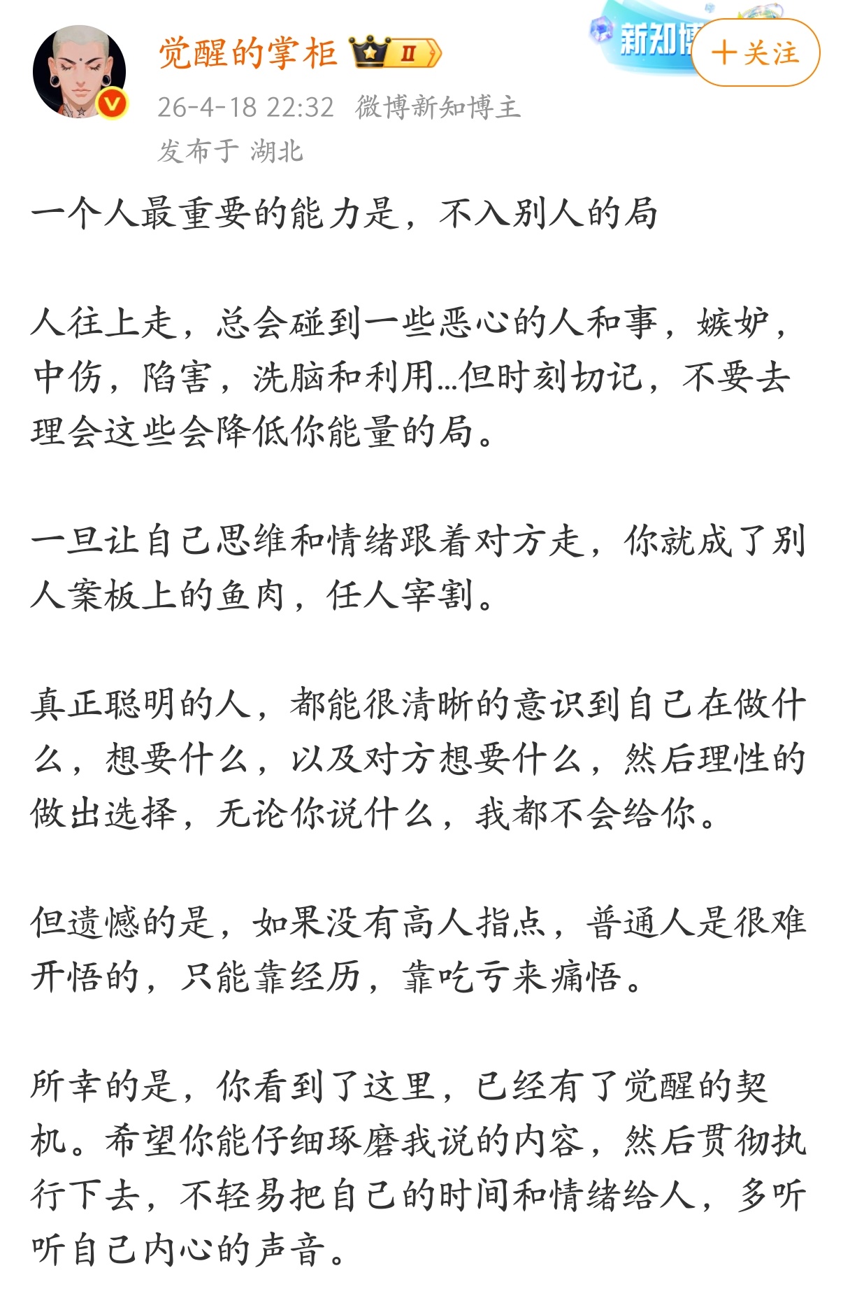 一段非常通透的话:“让能量永远不外泄的好方法:永远不要讨厌任何人。每当你讨厌一个