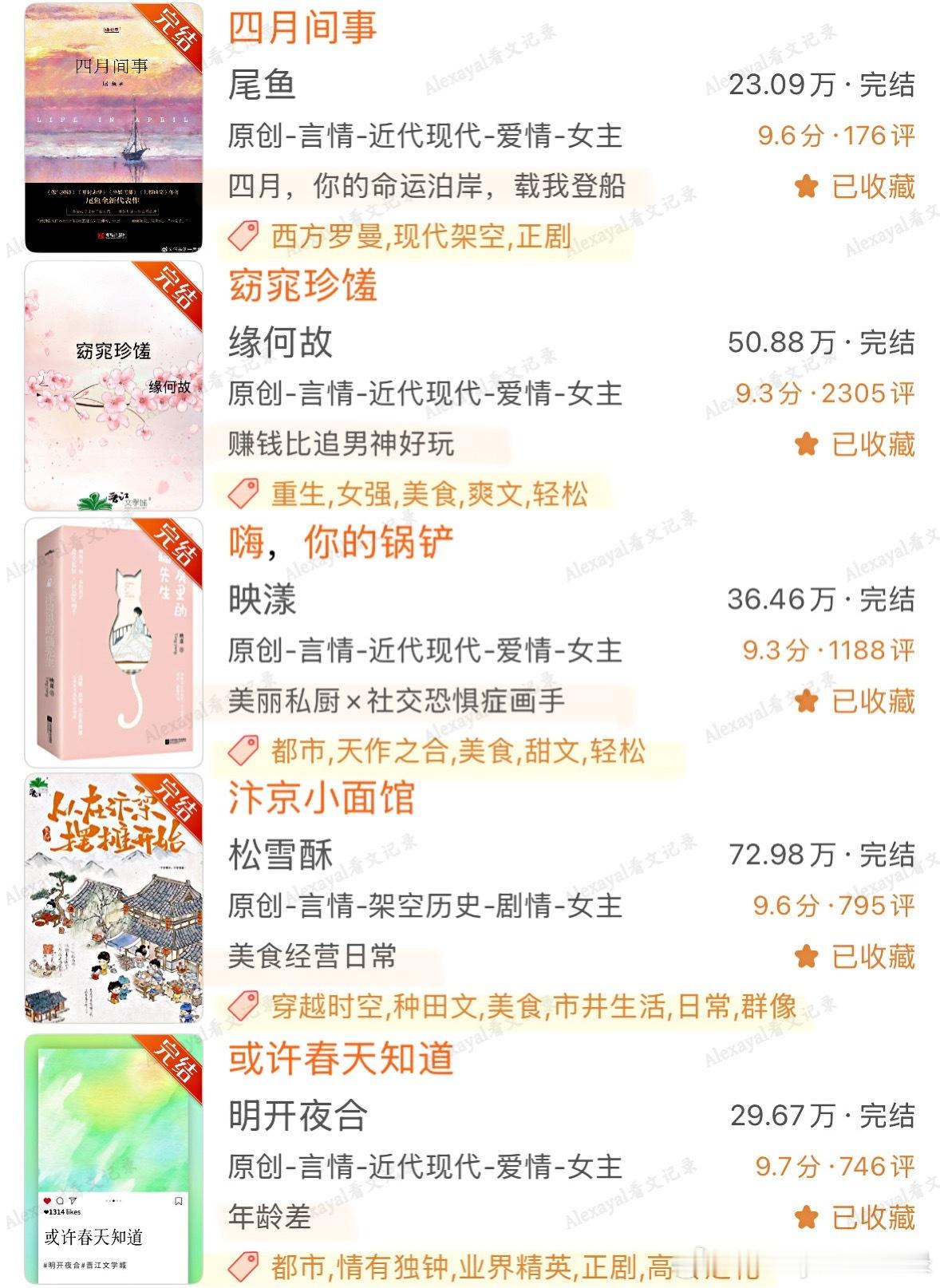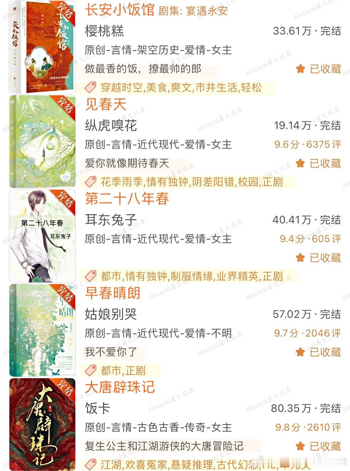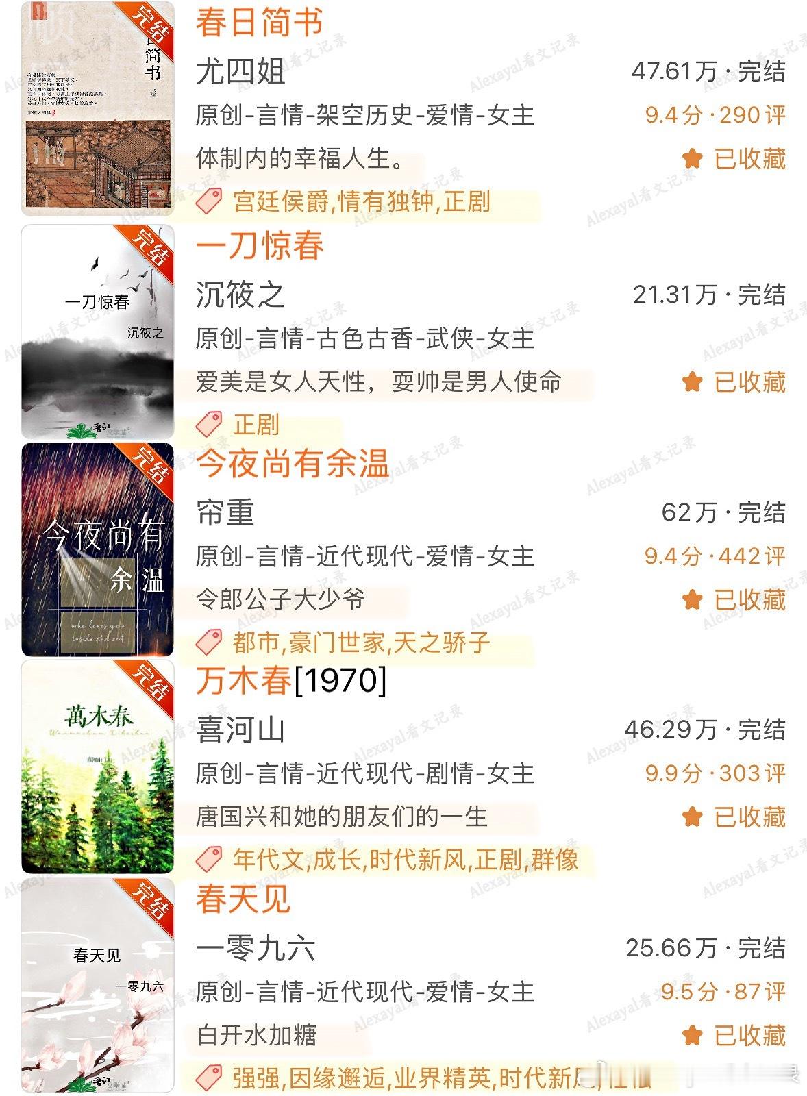 💐 春日书单第1️⃣期|15年书龄读者吃过的超好看仙品春日氛围感小说盘点♦️发生在春天的故事:《春起》金丙《四月间事》尾鱼[泰坦尼克]《真爱永恒》漫空♦️ 春日要出去走走|公路文:《不迎春》拉面土豆丝《渭北春天树》休屠城《火车在春天里停了一个小时》舍曼《大唐辟珠记》饭卡《菩提眼》漠兮《屠路》金丙《同生》御井烹香《行走水云间》行歌《陷地之城》天如玉《耕云钓月》《失路》叹西茶♦️ 春天要吃点好的|美食文:《长安小饭馆》樱桃糕《窈窕珍馐》缘何故《嗨,你的锅铲》映漾《汴京小面馆》松雪酥《心有不甘》三水小草《守陵娘子山食纪》绿豆红汤《穿来的郎君炊食又兴家》西瓜珍宝珠《炊金馔玉不足贵》沈霁川《明宫小食光》银河灿烂《长欢食肆》四颗杨梅《食全食美》《开封府美食探案录》少地瓜《汴京觅食记》沈知何《妙手生香》董无渊《赚💴真的好难哦!》退戈♦️ 春季是充满生机的|种田文:《末世第十年》扶华《农家小福女》郁雨竹《那村那人那傻瓜》福宝《春时恰恰归》申丑《末世小食记》清辰《山山有药》橘香袭人《探花郎的极品二嫂》《流放后,我在敦煌当汉商》《逃荒到草原后》绿豆红汤《二人森林》《三人荒野》浴火小熊猫《吉祥如意》暮兰舟《老房子的春天》烟半根《伊尔塔特的农场》秋野姜《在伦敦当工厂主的快乐日子》旧书报刊♦️ 春日氛围感小说/适合春天看的故事:《春去春又回》江渔白《春日简书》《一瓯春》尤四姐《一刀惊春》沉筱之《春天见》一零九六《万木春》喜河山《见春天》纵虎嗅花《今夜尚有余温》帘重《春天的十个瞬间》《或许春天知道》明开夜合[希腊神话]《春神之恋》漫空《三十六陂春水》衣冉《早春晴朗》姑娘别哭《第二十八年春》耳东兔子《春日出游计划》蓝瘦子《似春日似晚风》是辞《春日戒》勖力《比春天更绿,比夏天还明媚》叹西茶《宦门逢春至》梁芳庭《院里》Twentine《在春天》法拉栗《冰冻春天》有云《鲜花盛开的春天》人海中