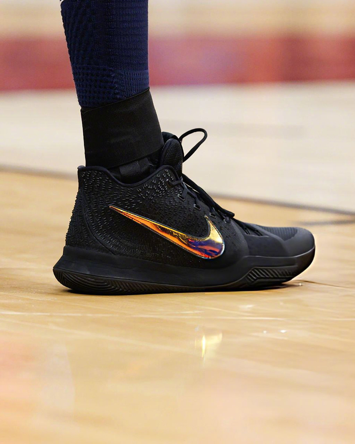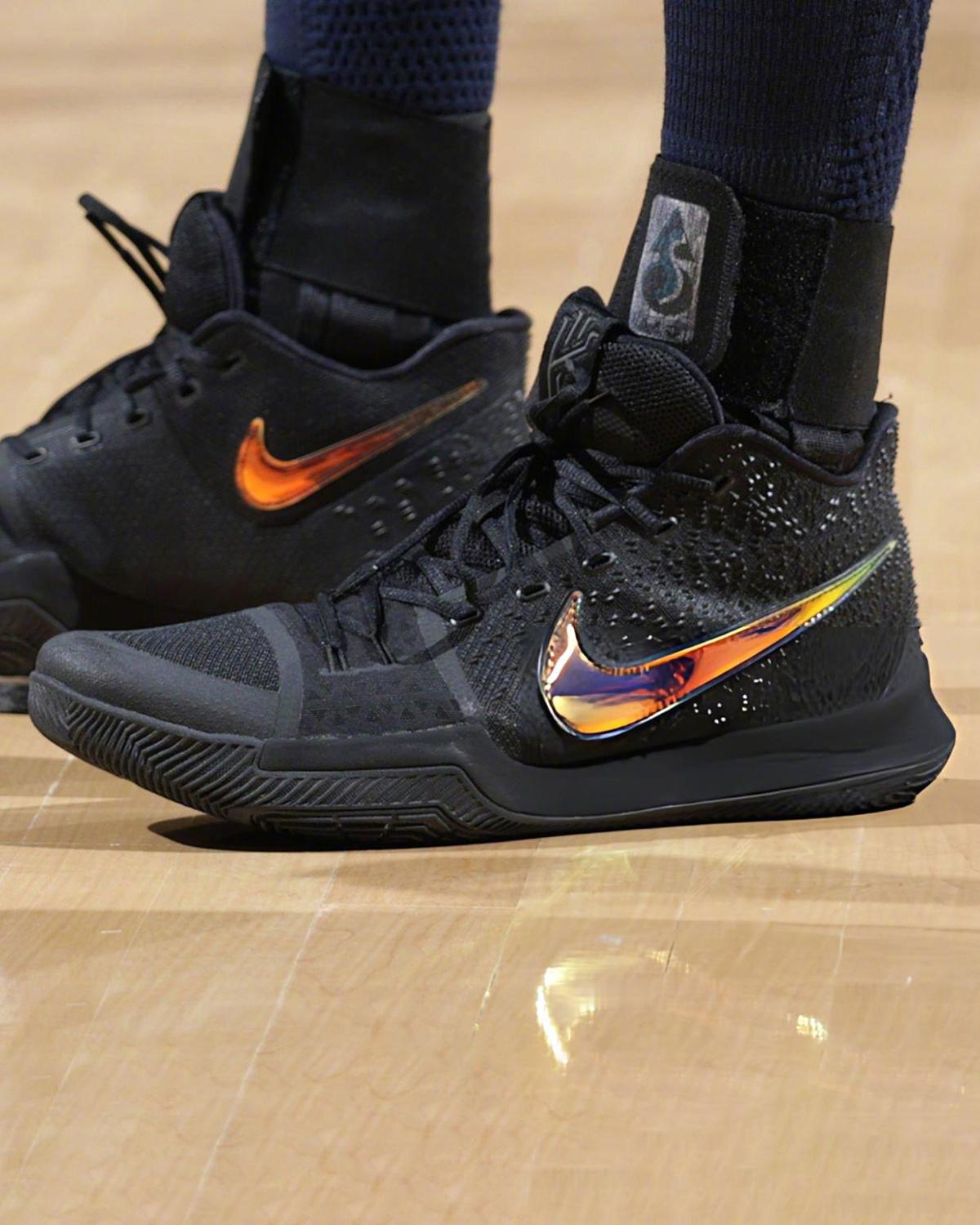 今天,骑士球员贾雷特-阿伦穿着了一双PK80配色的Kyrie 3,虽然也是Kyrie 3,但不是他常穿的TB Black White(黑白配色)。
