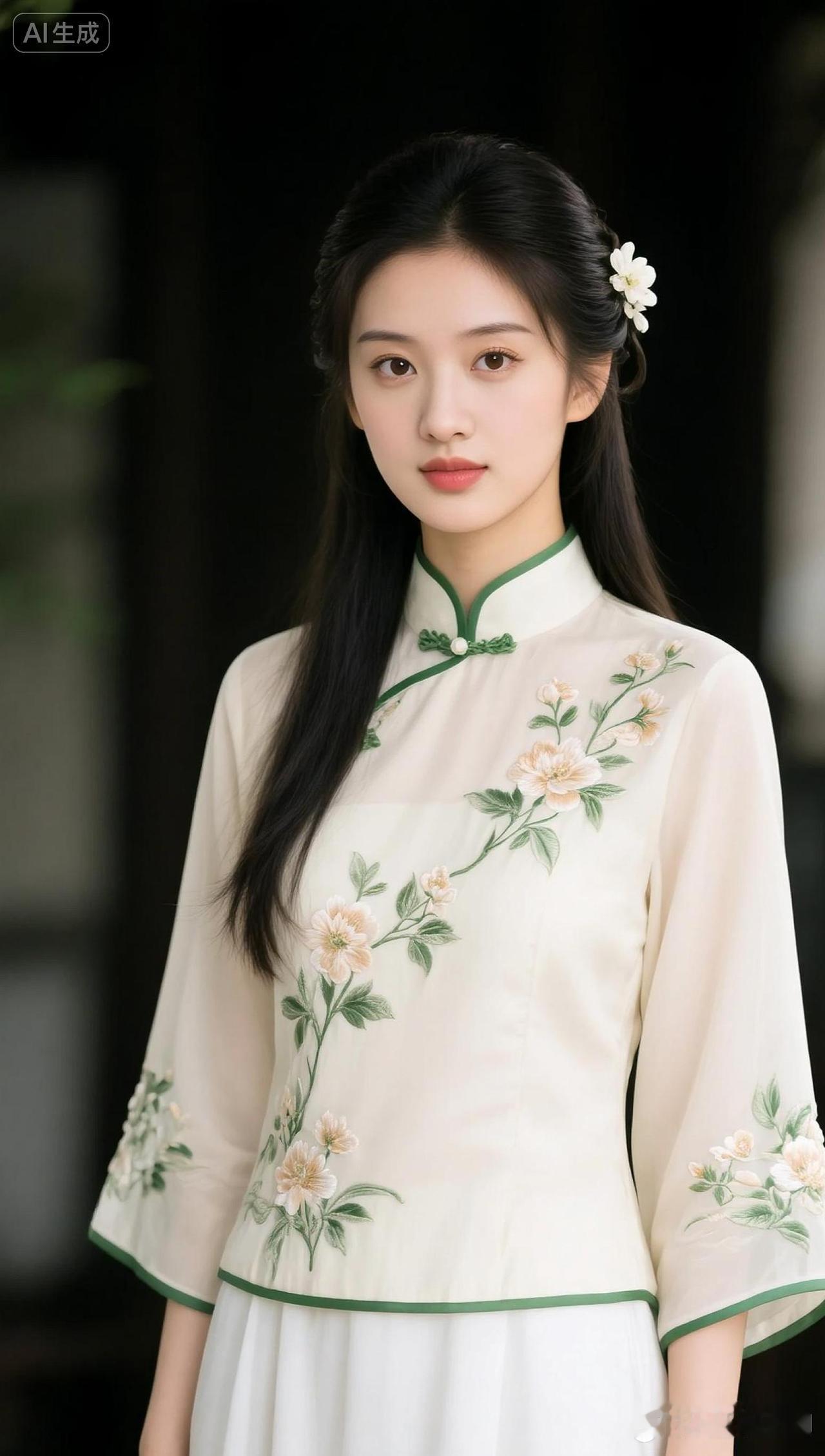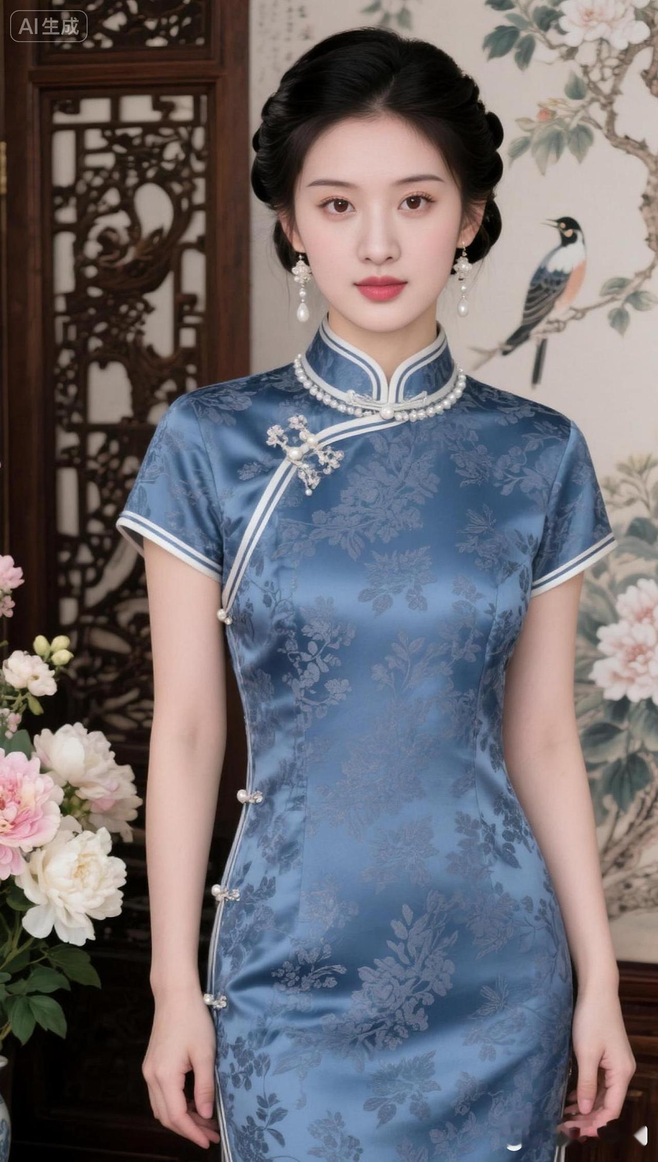 在这复古的砖墙前,一袭旗袍勾勒出东方的柔美与雅致。耳畔的花朵仿佛是时光的低语,诉