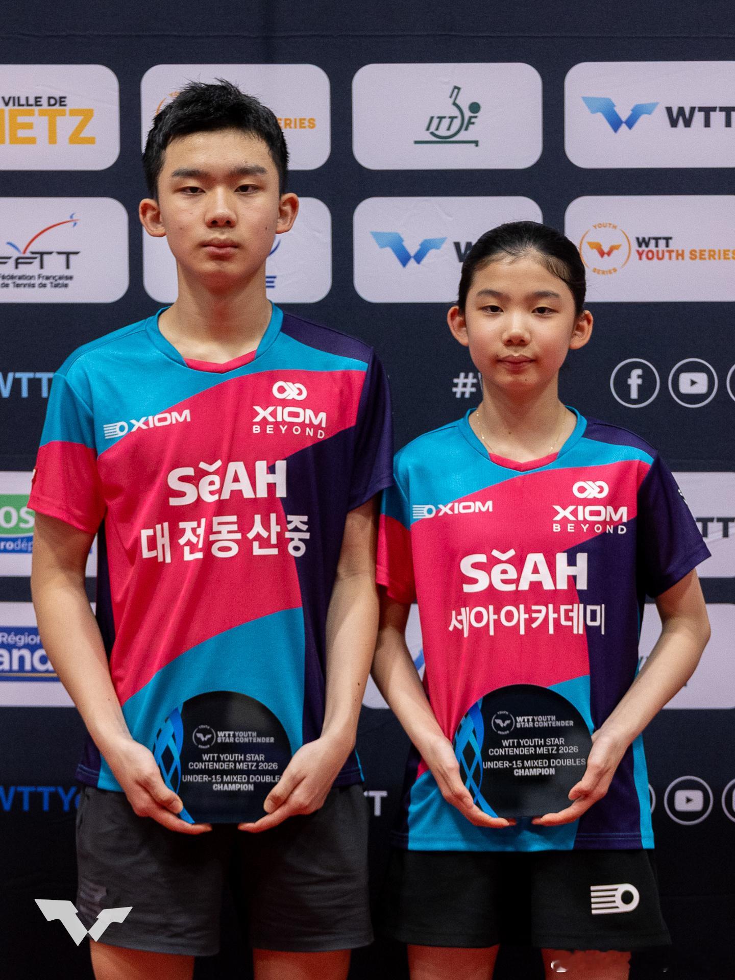 WTT青少年球星挑战赛梅斯站2026🇰🇷李承洙和妹妹李艺瑞(LEE Yeseo音译)获得U15混双冠军🏆