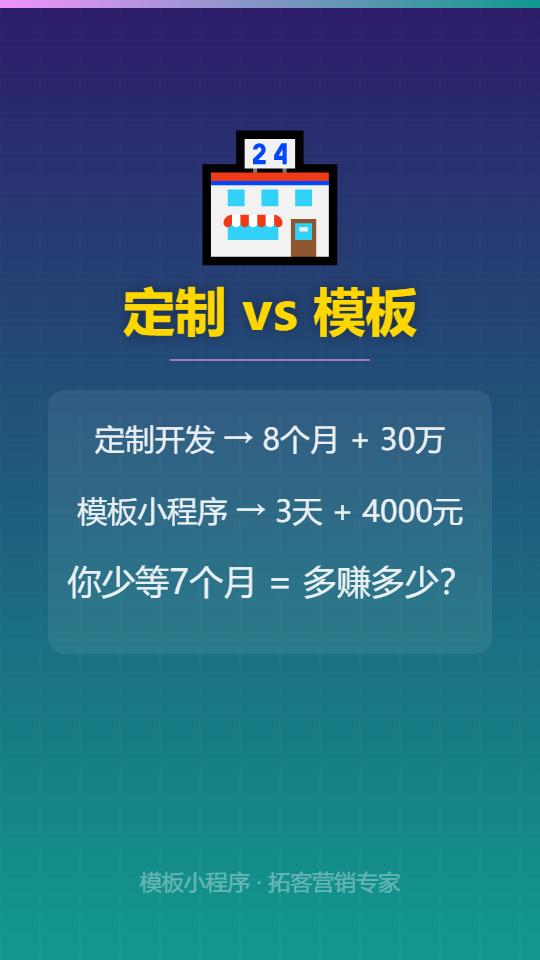 定制开发的本质是"按需定制痛苦"——时间长、风险大、后期绑架你。而模板小程序走的是另一条路:经过千家店铺打磨的成熟产品,你买的不是代码,是一整套跑通了的商业模式。