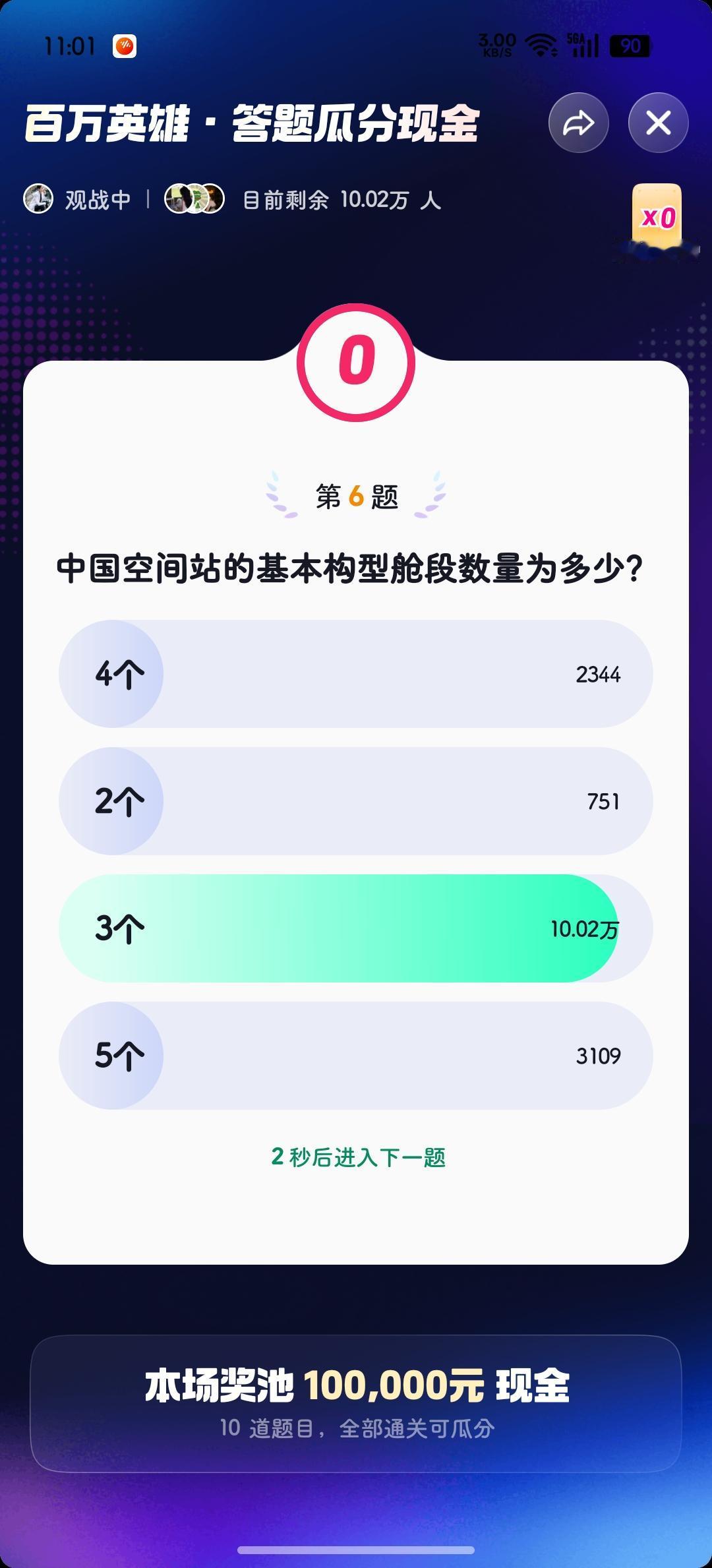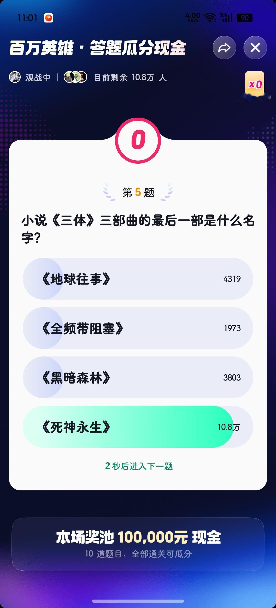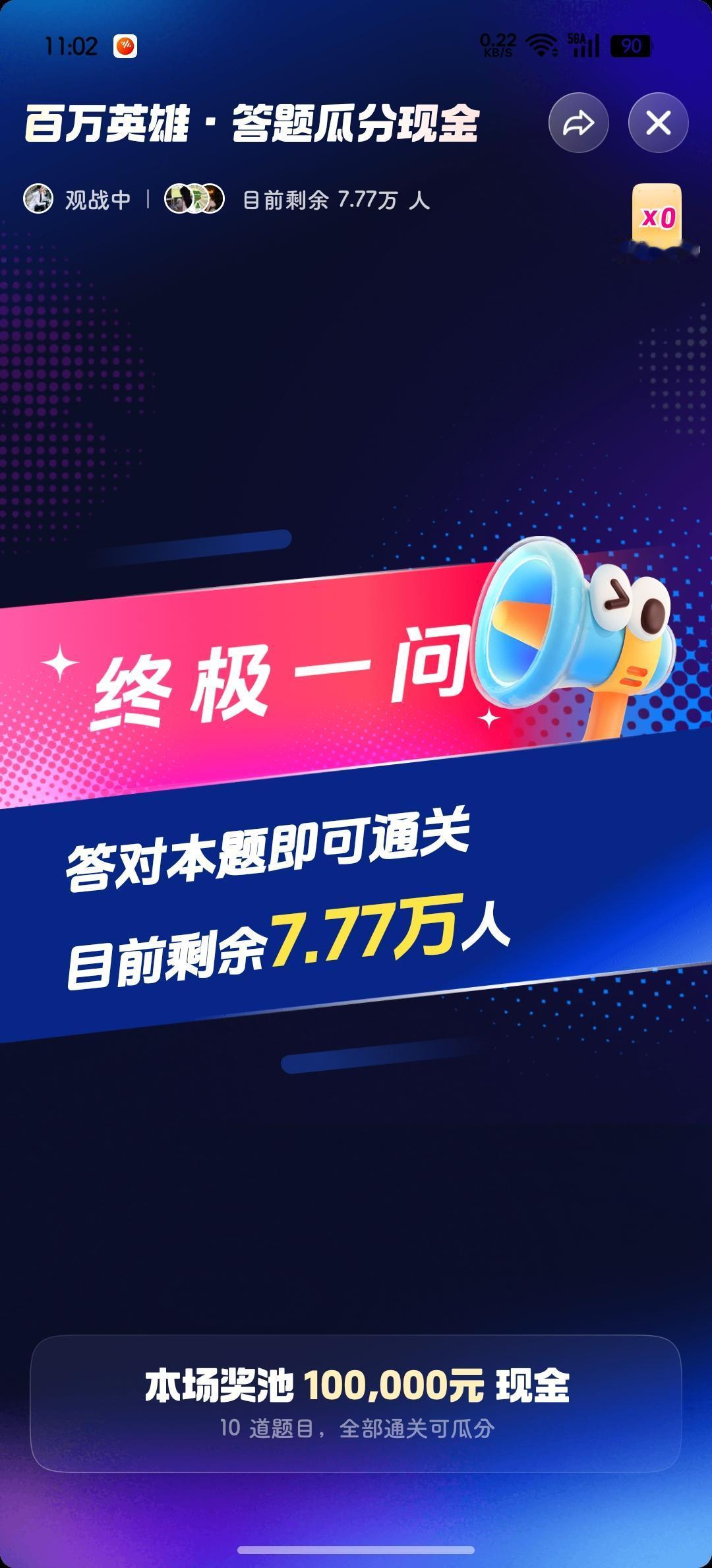 今天早场的抖音答题, 一共才10道题, 每道题10秒钟″ 躲过了第二题, 还是没