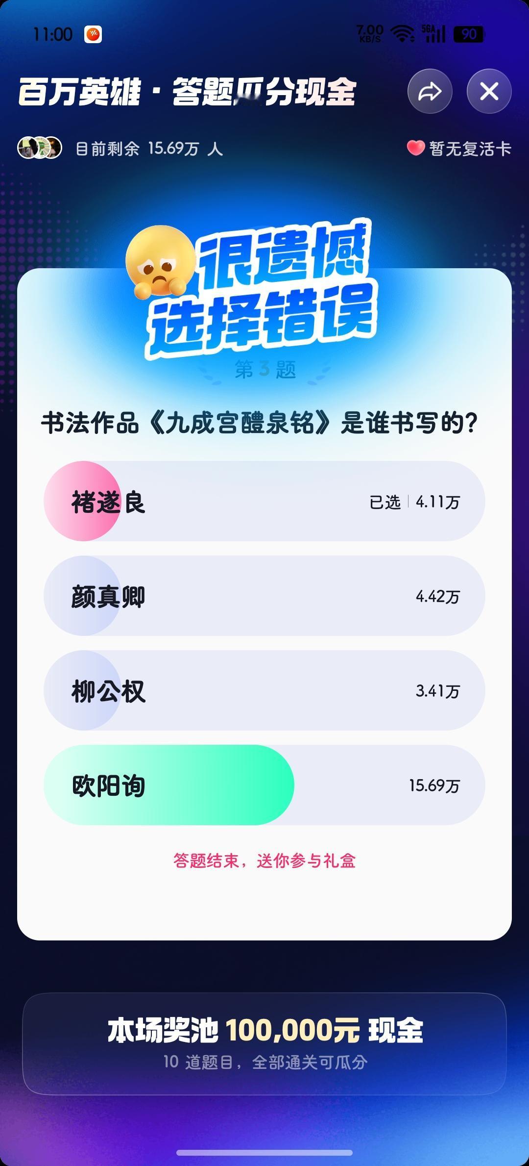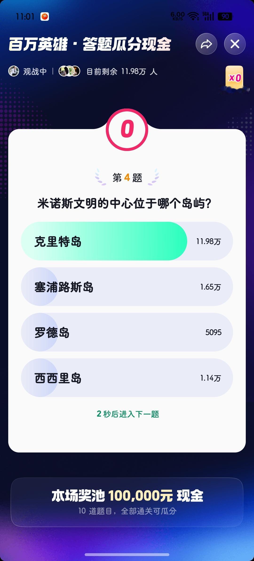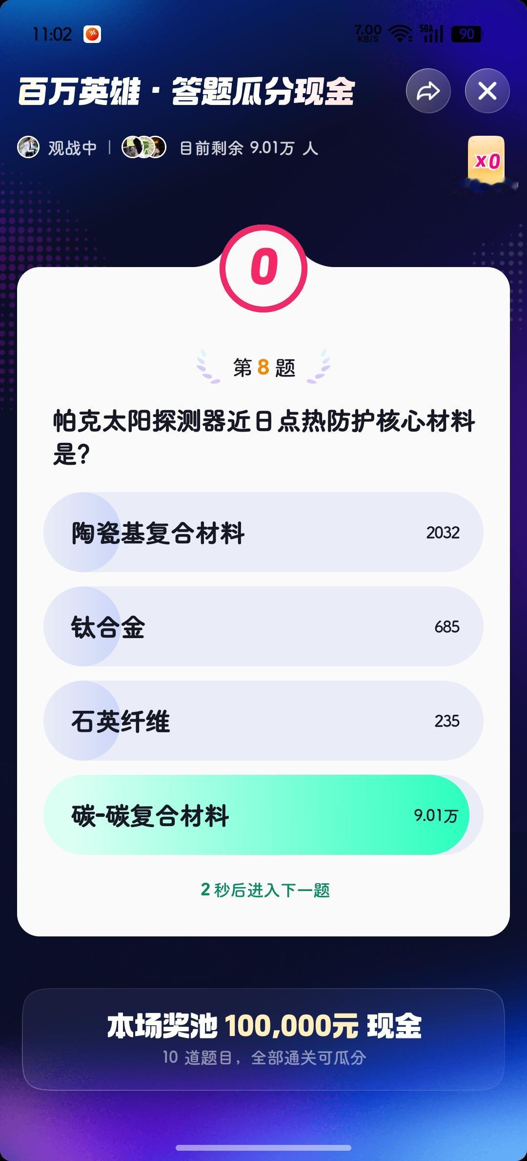今天早场的抖音答题, 一共才10道题, 每道题10秒钟″ 躲过了第二题, 还是没