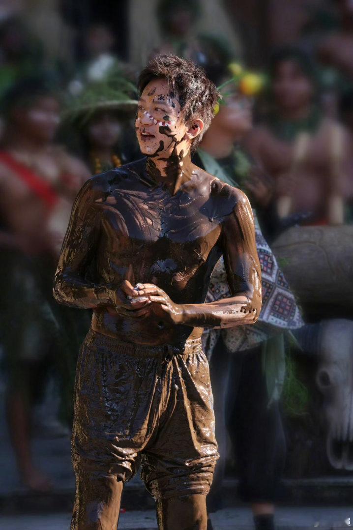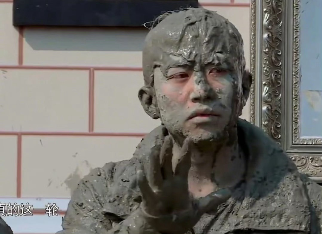 邓超现在洗澡离不开黑泥 邓超在泥潭滚完直接变黑人,这哪是摔跤,这是给自己做了个全身黑泥SPA。