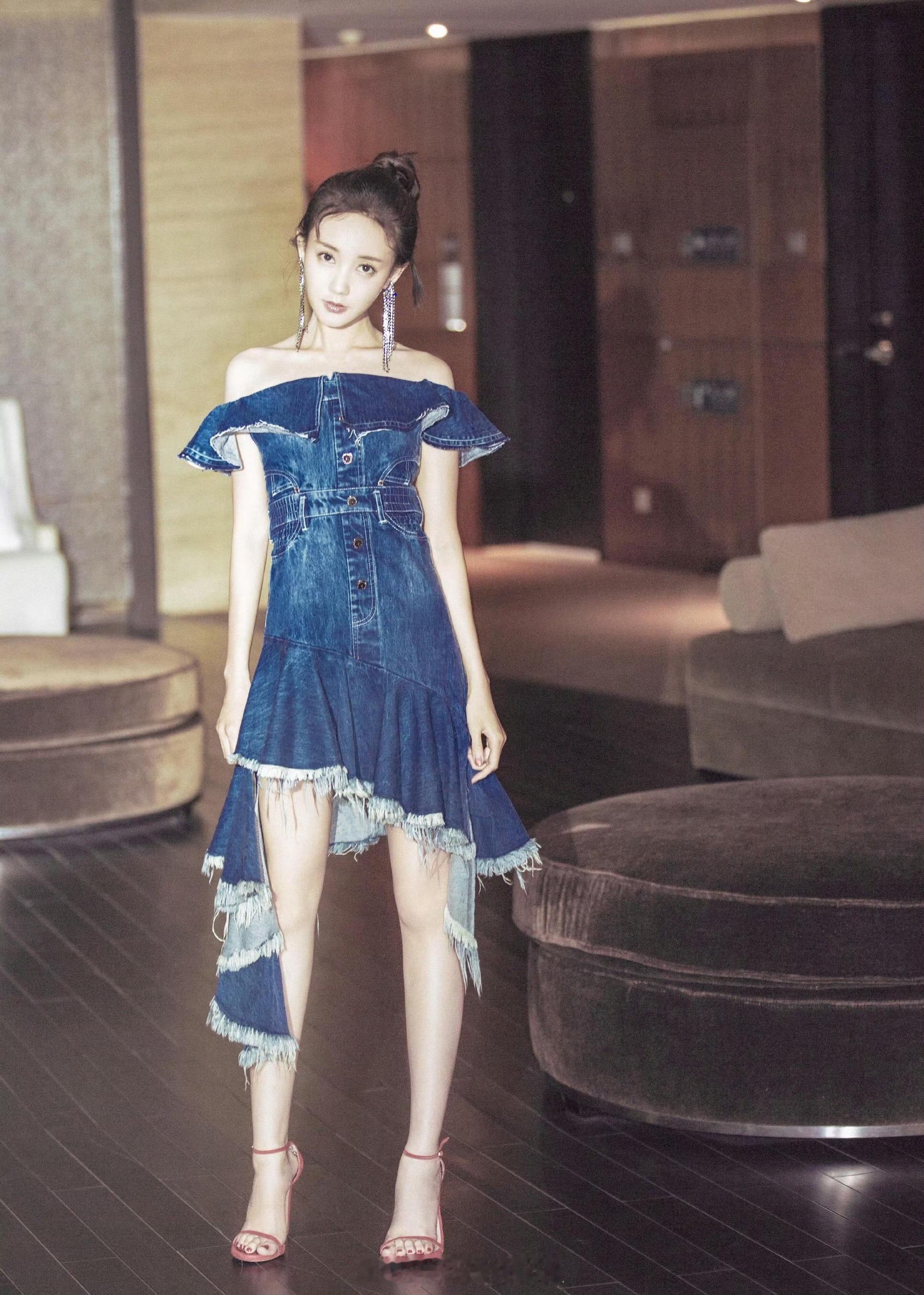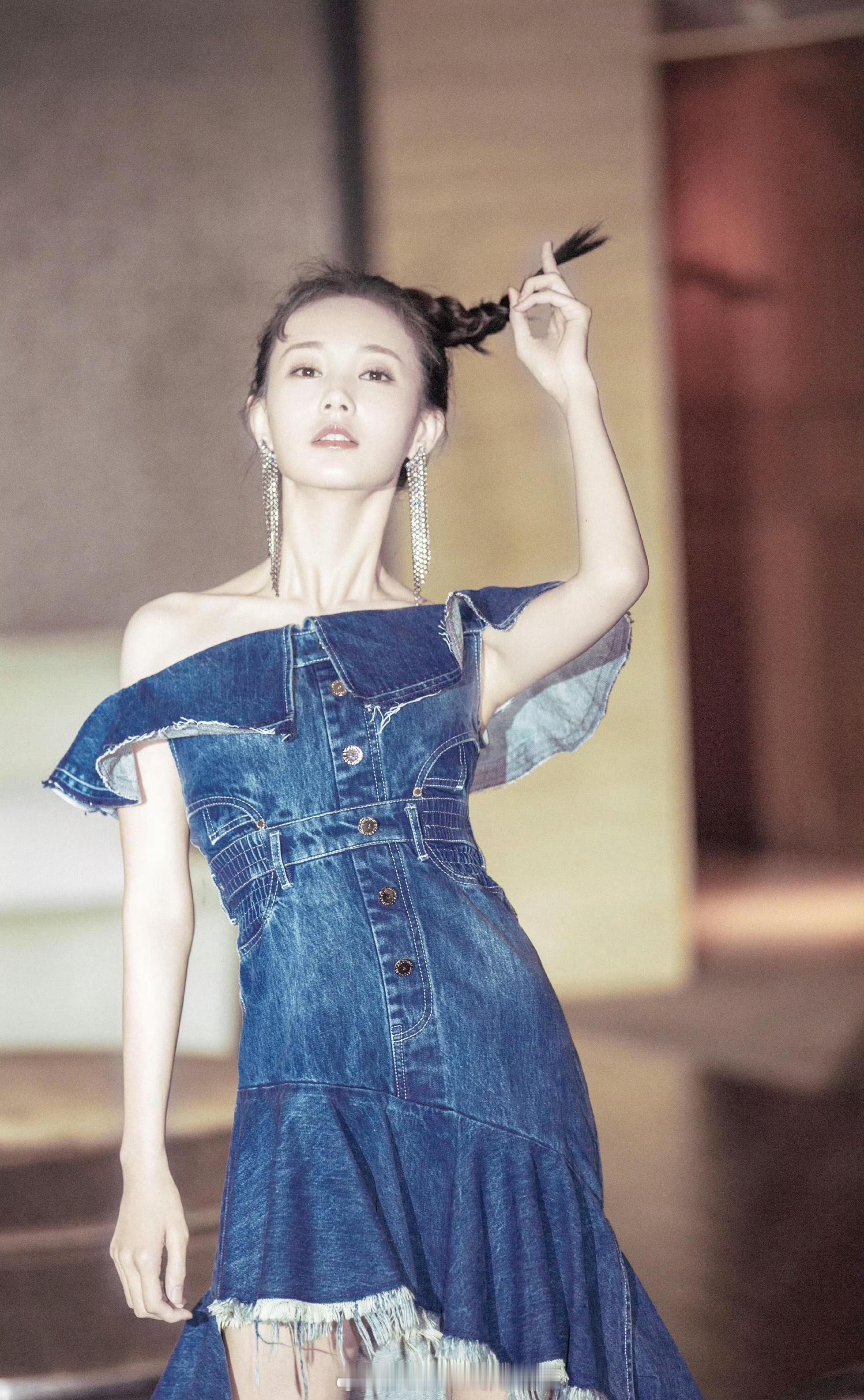 李一桐牛仔裙穿搭写真甜酷迷人