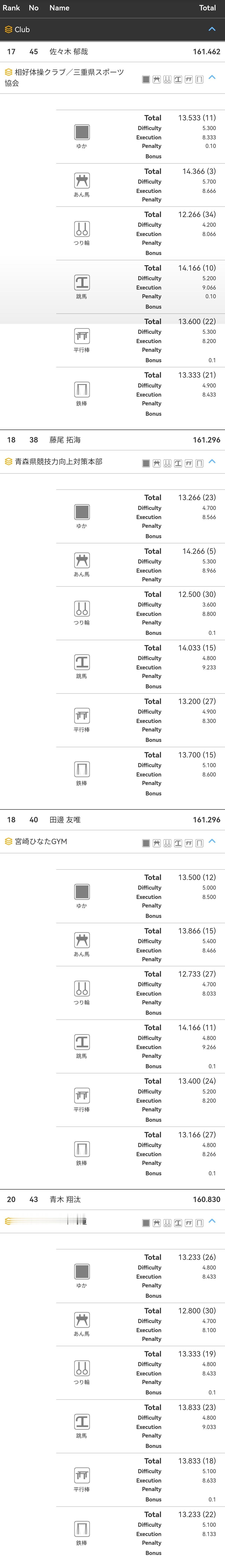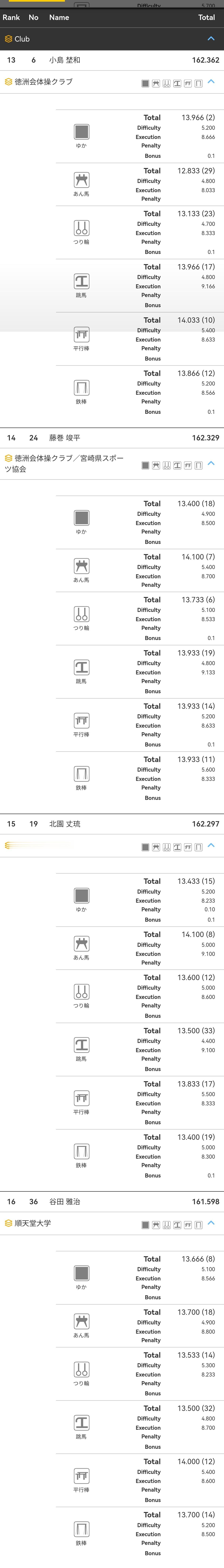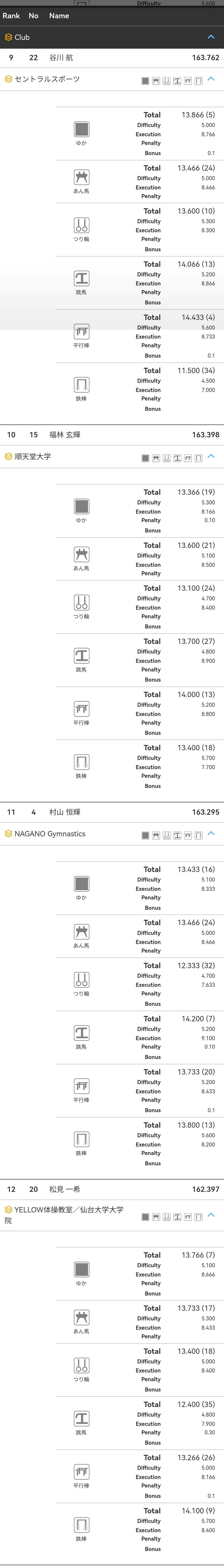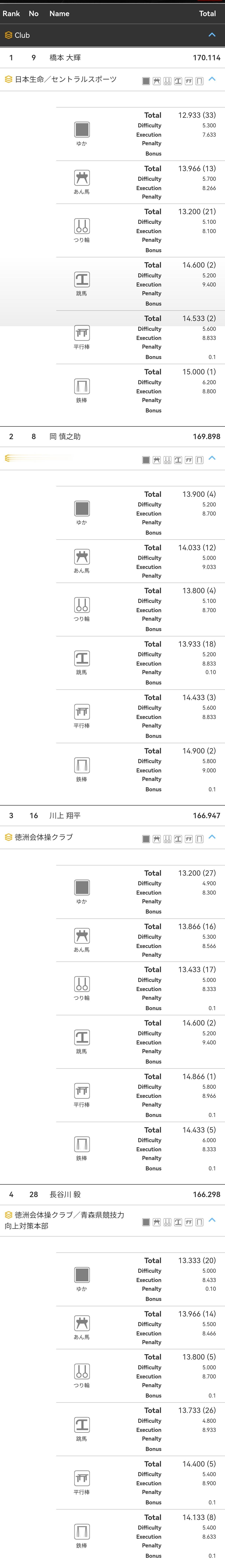 排名总分为两日成绩加总,哈西摩托应该是六连冠了(但你的鞍马这两年是咋回事)?川上男士NHK正常点今年应该能拿到爱的号码牌了