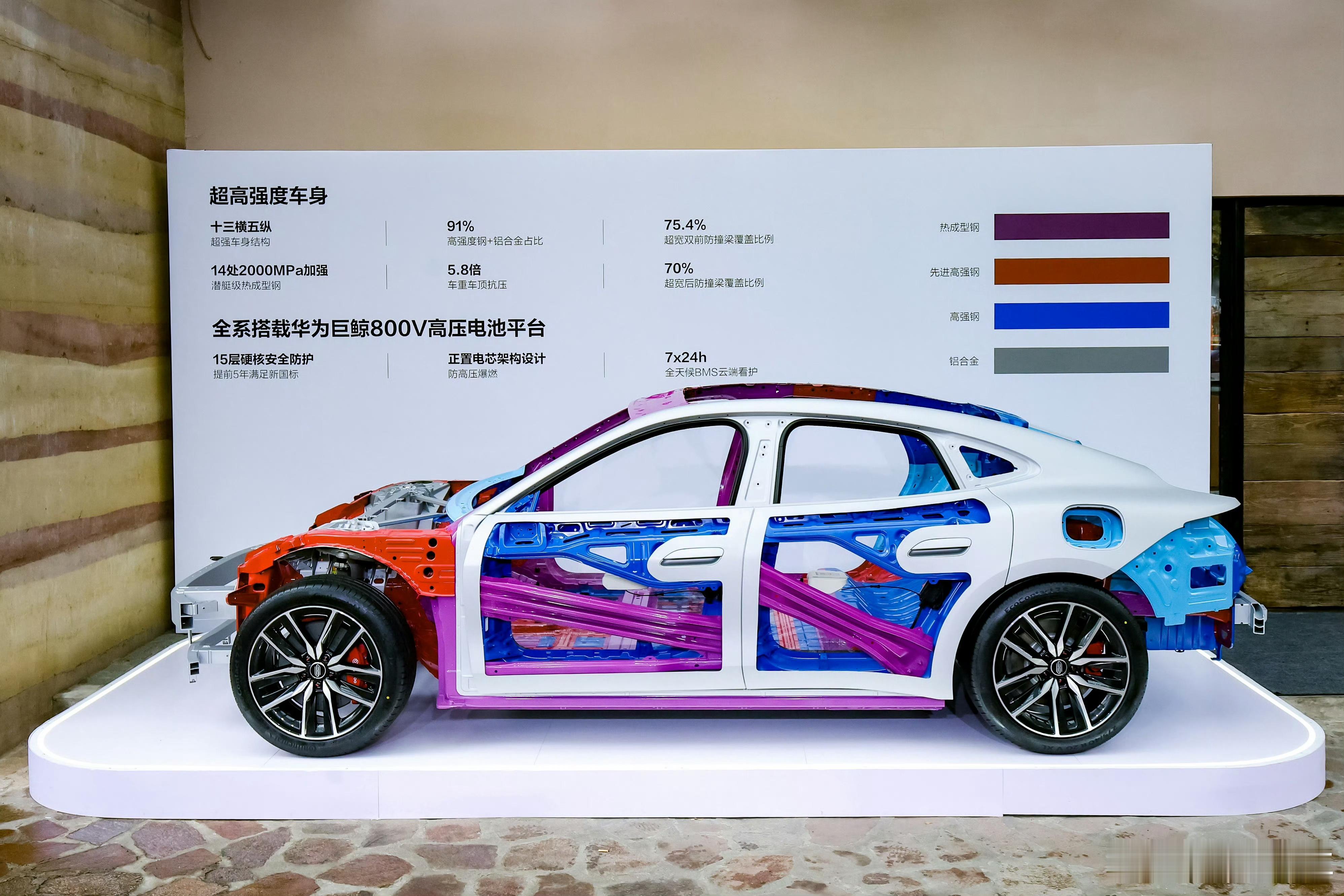 尚界Z7的防撞梁和车身钢材用料,拆好了放着给你看。大面积的2000MPa超高强度
