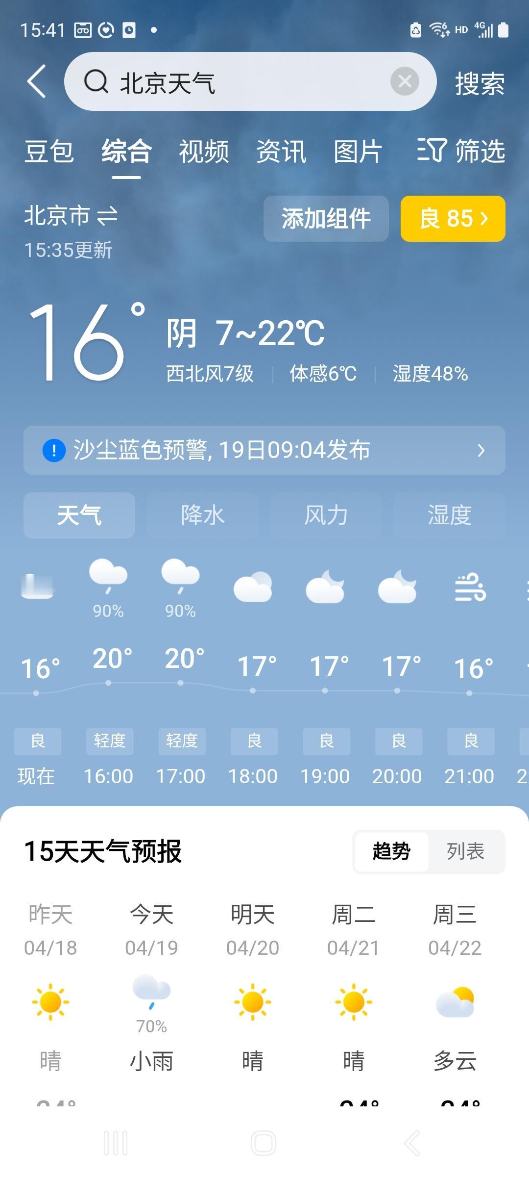据预报,今天是北京4月份第14个雾霾天,二级良85。属轻霾。我在海淀看上午天空除顶部一小片打开了,有模糊的太阳和小撮云朵,四周大多都是厚灰。下午就全厚灰了。