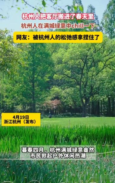 杭州人把客厅搬进了春天里四月的杭州满城绿意,公园草坪上全是享受春光的市民。有人支