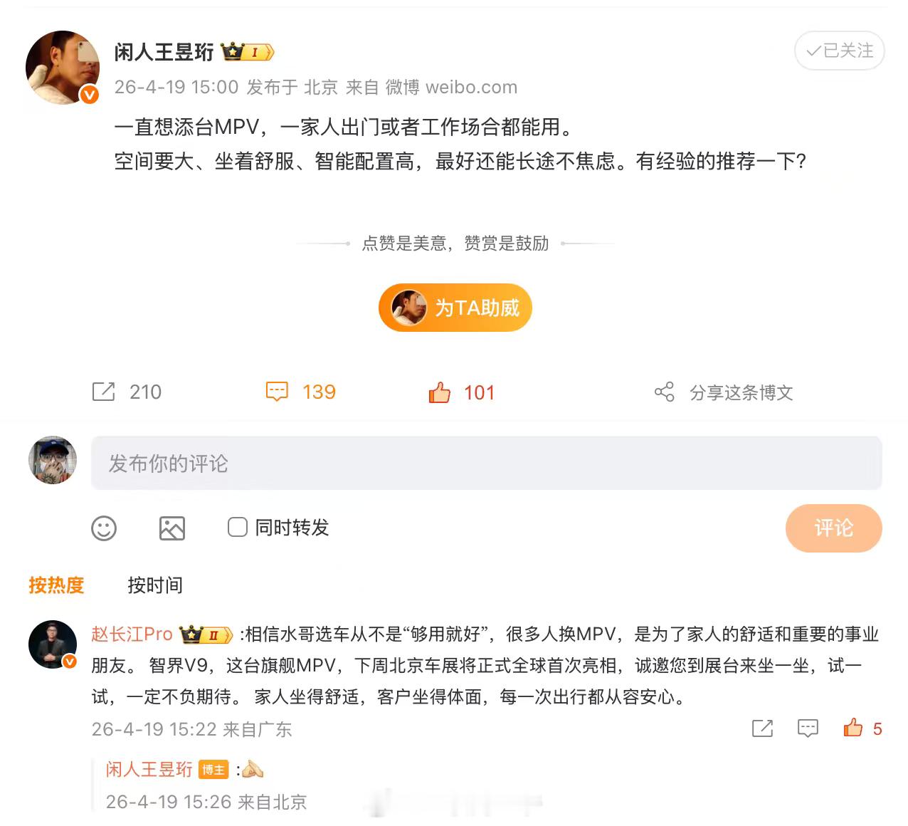赵长江推荐水哥买智界V9水哥在线求MPV,直接被智界赵长江"精准截胡"! 王昱