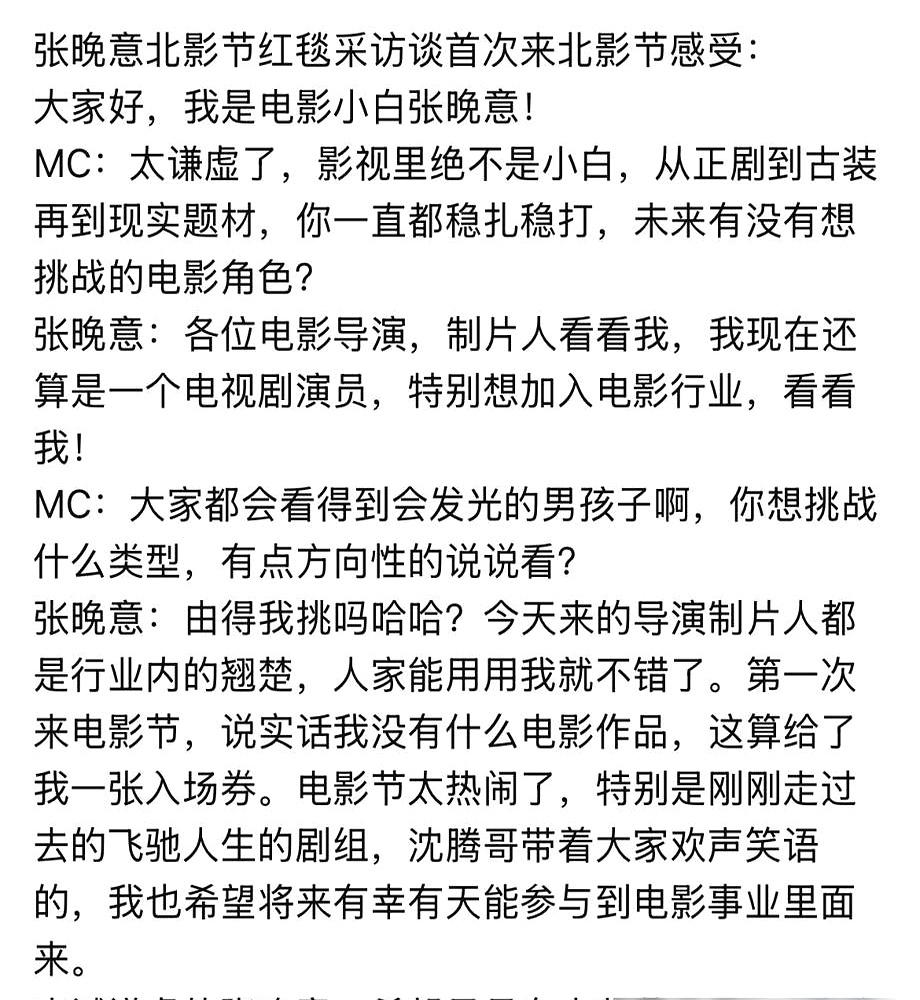 谁敢信?当红小生张晚意,竟然在北影节红毯上公开“求职”了。