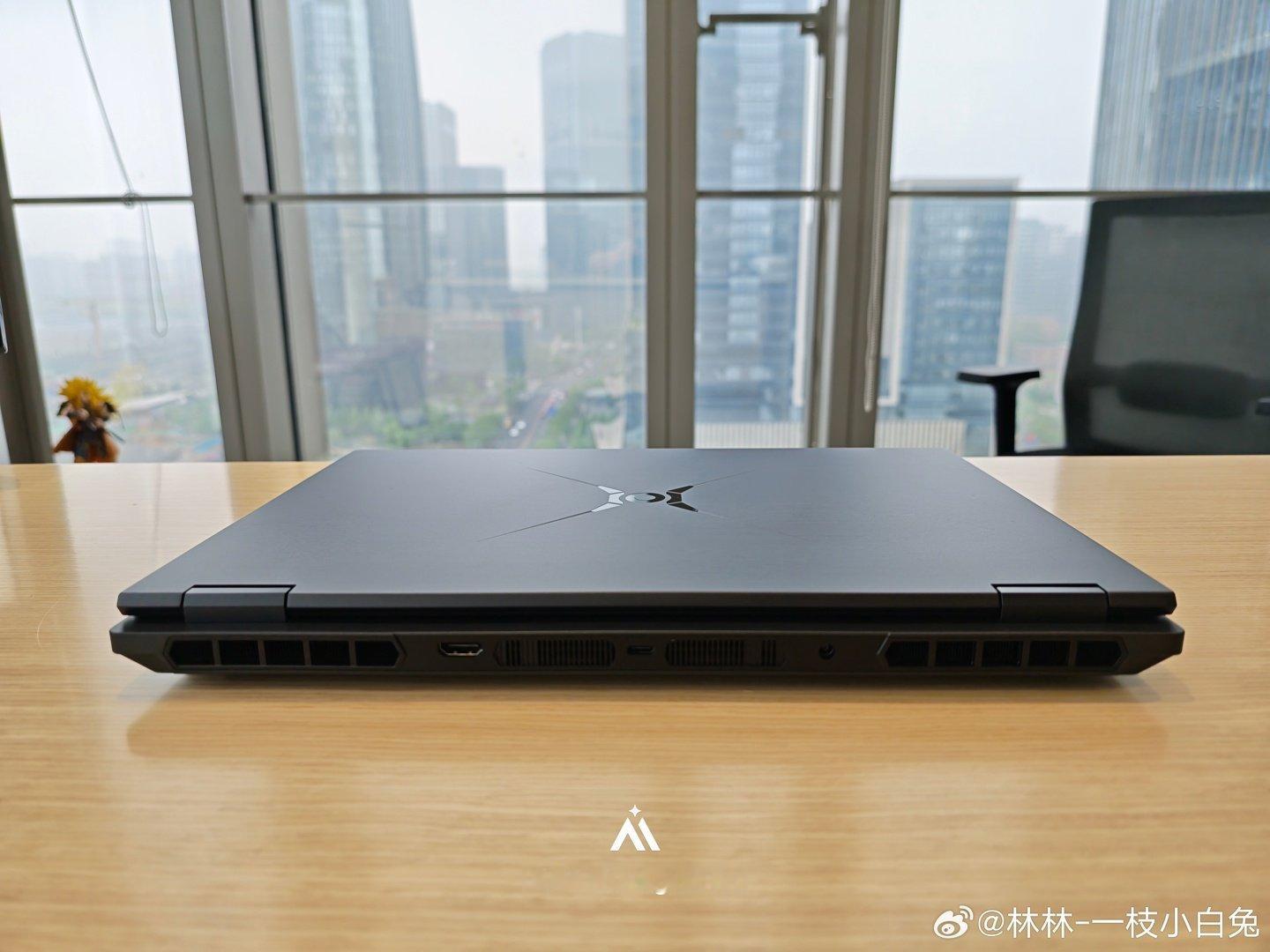 从图中来看,该机型采用黑色“黑武士”设计语言,A 面同样配备猎人 LOGO,整体风格硬核沉稳,无 H9 版本的尾喷灯效与四风扇布局,外观更趋传统游戏本风格。