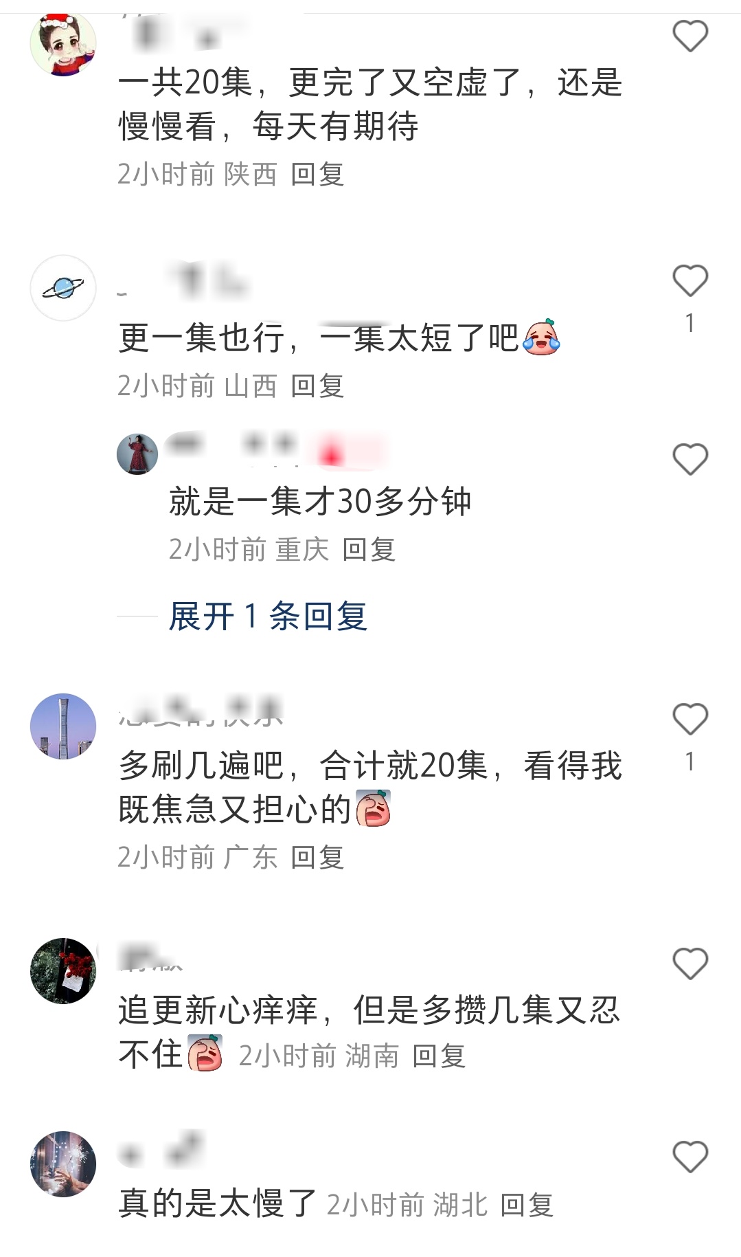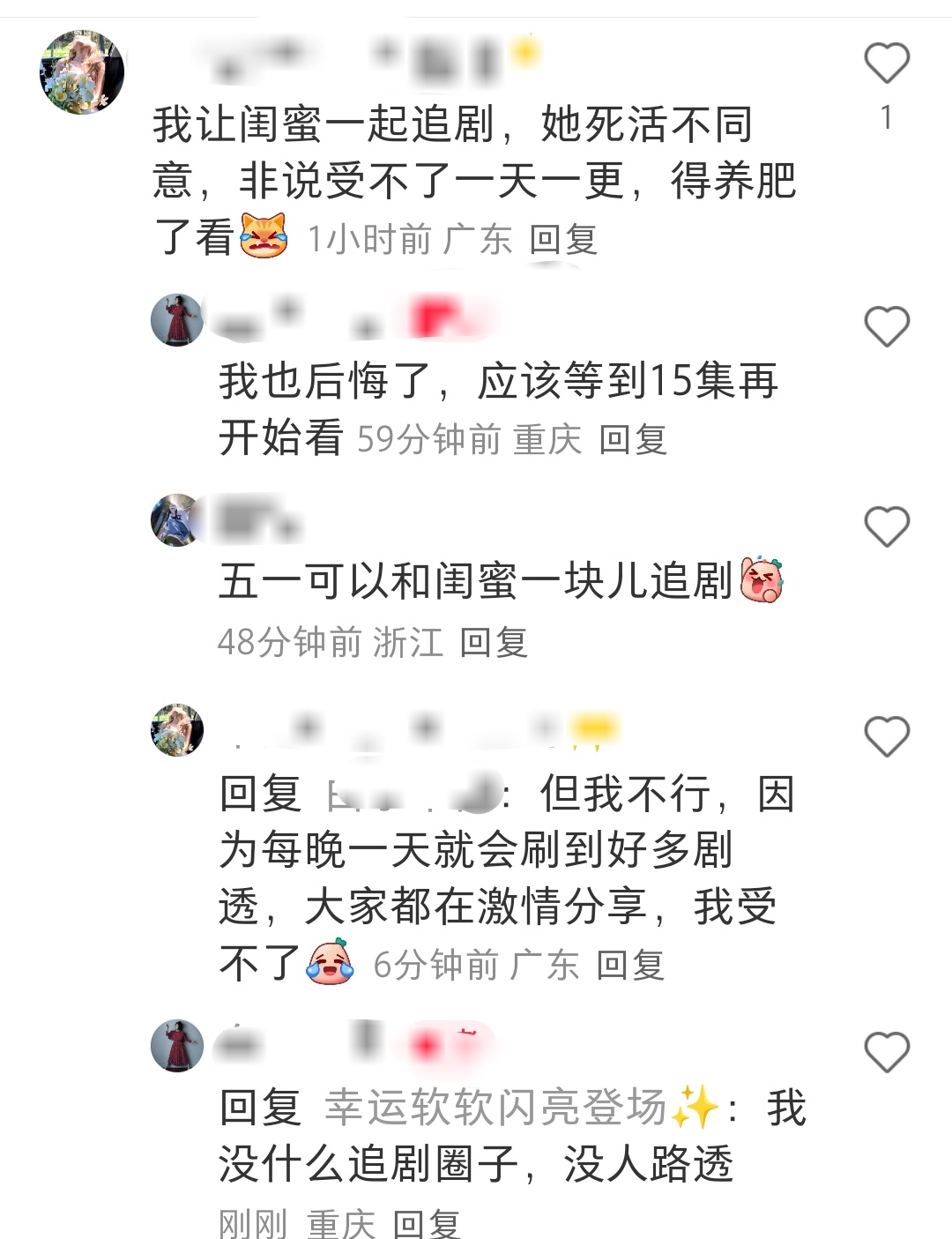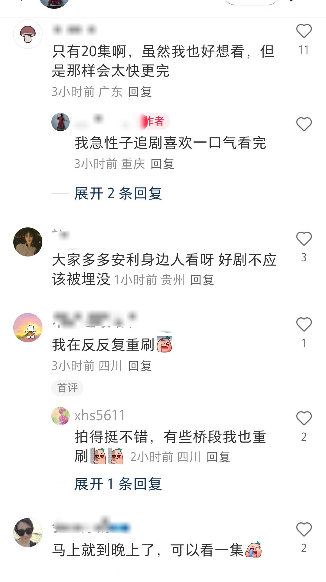 坐等我家神剧发酵,感觉路人看方圆八百米的好评还是很多的。追剧氛围也好,讨论的点有