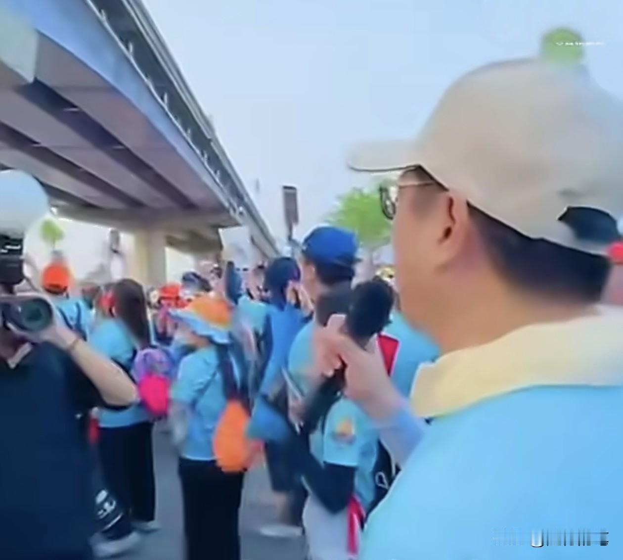 邱垂正穿着浅蓝色并印有妈祖像的T恤,戴着帽子,拿着麦克风,一看就知道是特地有准备在恭候的,而等到妈祖巡游到,马上摘下帽子,向妈祖祈祷,可见邱垂正对妈祖确实够诚心。