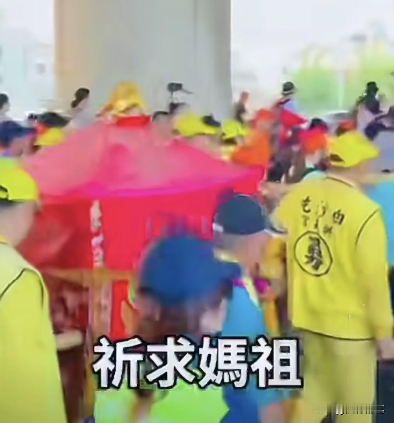 19日台湾白沙屯妈祖巡游,台湾陆委会主委邱垂正毕恭毕敬在恭候妈祖进香回銮,并且还拿着麦克风,大声的向妈祖祈祷两岸和平。