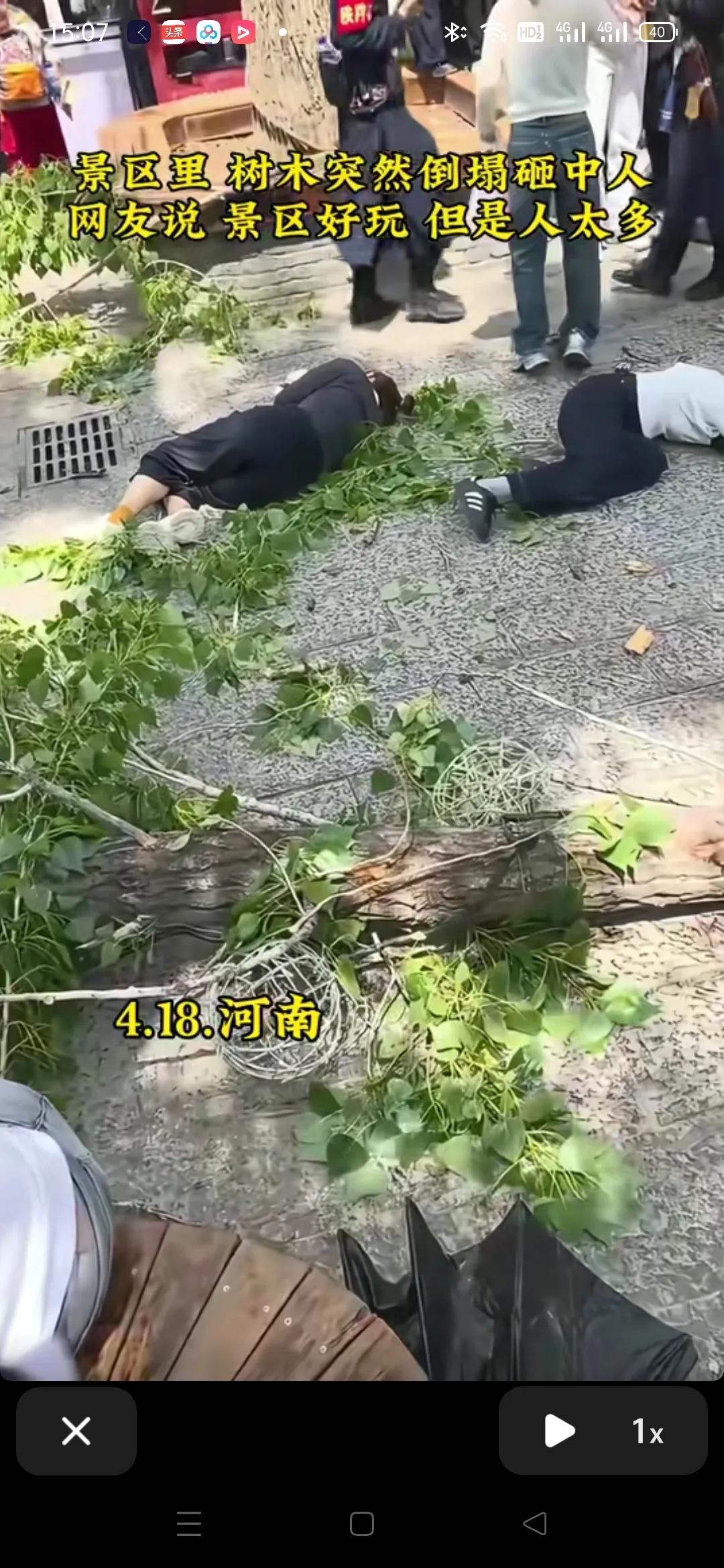 万岁山的树怎么还能砸到人呢?马上五一劳动节了,景区好不好看无所谓,关键得保证游客安全呐!视频里有几个游客被树砸到了,躺在地上,有网友还开不合时宜的玩笑,说是多躺一会儿讹钱,说这话可不对啊,谁愿意出去玩被砸啊,给一万两万也不愿意出这种事,马上五一了,注意安全吧,最好憋在家里哪里不去最安全。