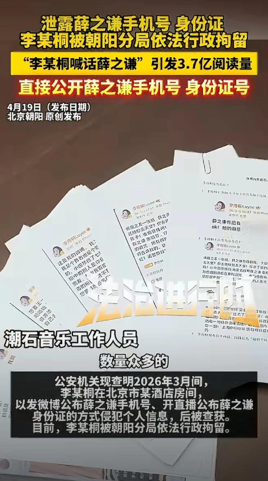 经过北京朝阳分局警方调查取证,违法事实清清楚楚、证据确凿。目前李雨桐已经被依法行政拘留10天,拘留时间从4月10日到4月20日,薛之谦经纪公司也公开了行政处罚决定书,白纸黑字一目了然。