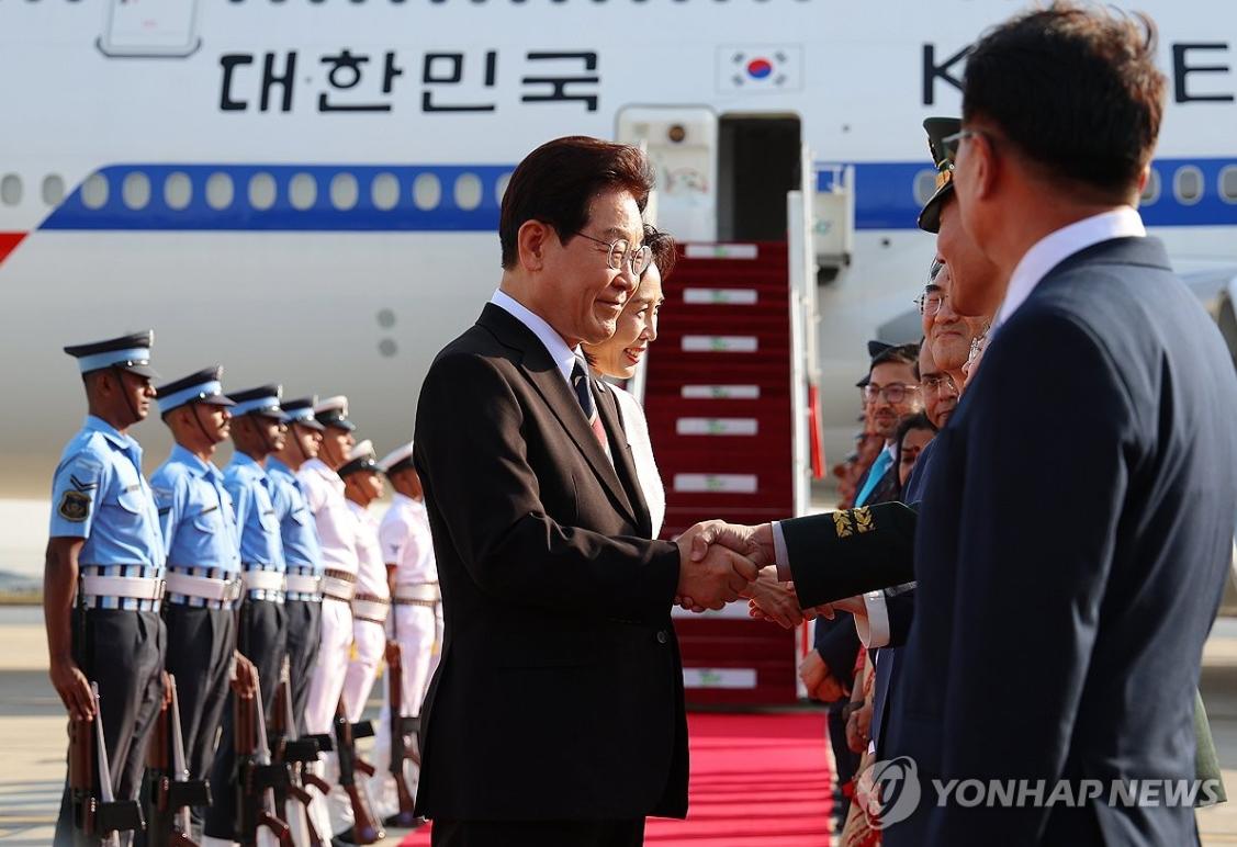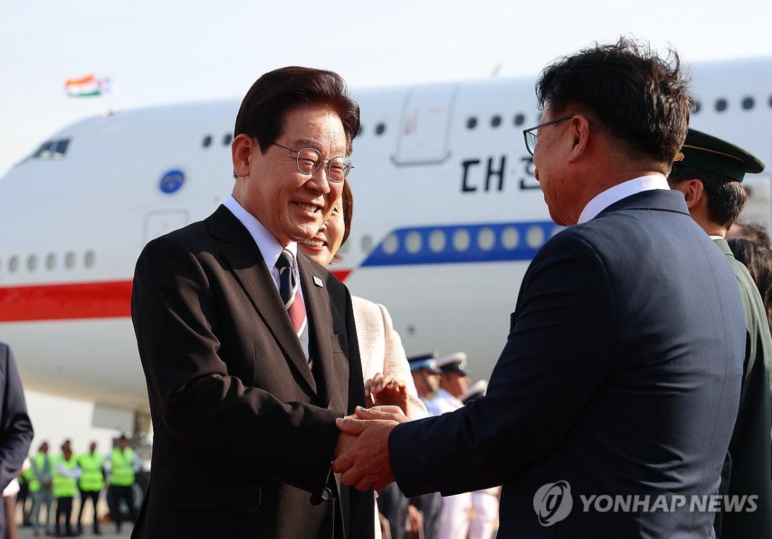 李在明抵达印度新德里受到隆重欢迎!4月19日韩国总统出访印度,乘坐飞机抵达新德里,接机现场十分隆重。