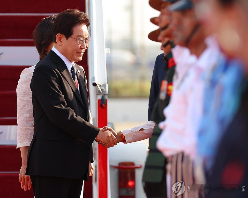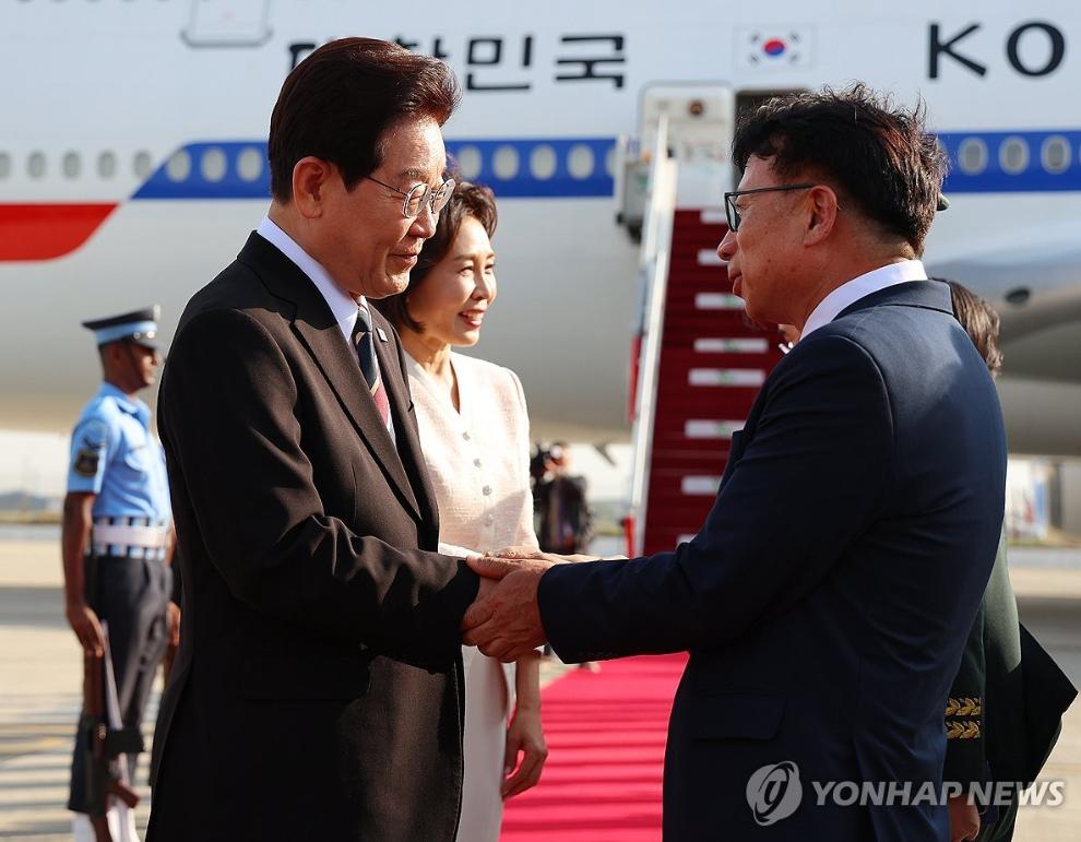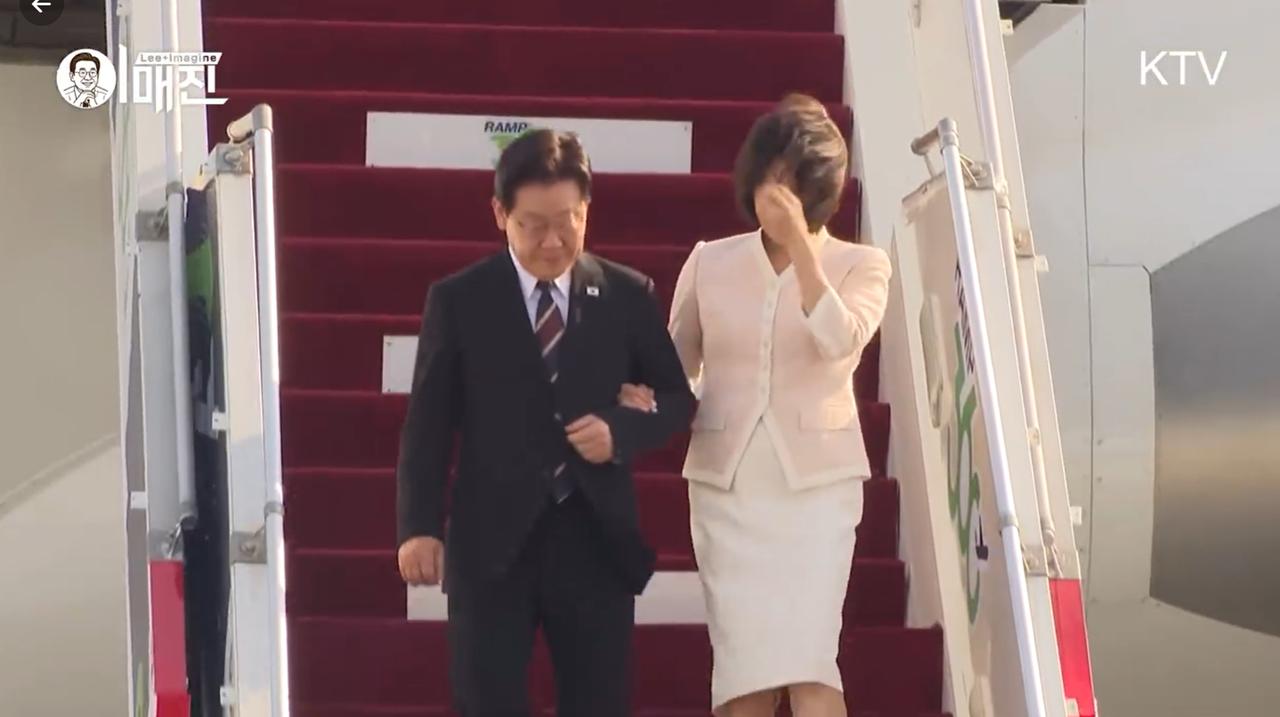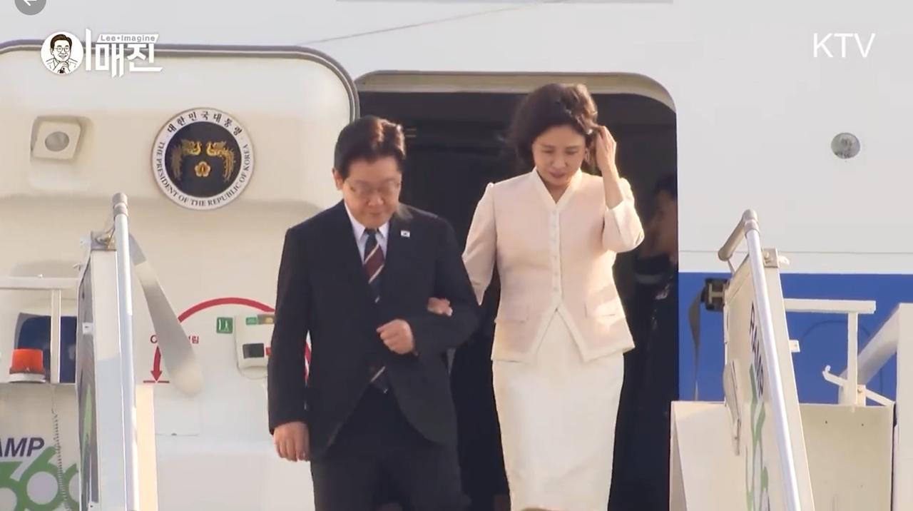 韩总统李在明面对接机仪仗与现场媒体,举止得体、气场沉稳,还有着装也得体大方,下了飞机和接机人员握手,太有总统应有的风范儿了,可以说下飞机的整个过程零失误。