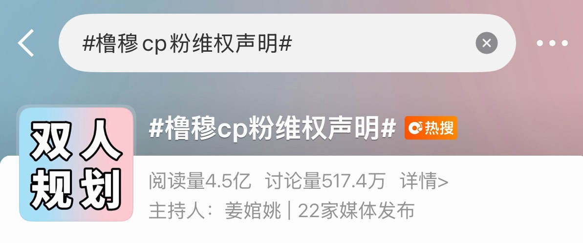 橹穆cp粉就双人规划维权数据超500万人次点赞,相关话题超4.5亿,这么扛打的数