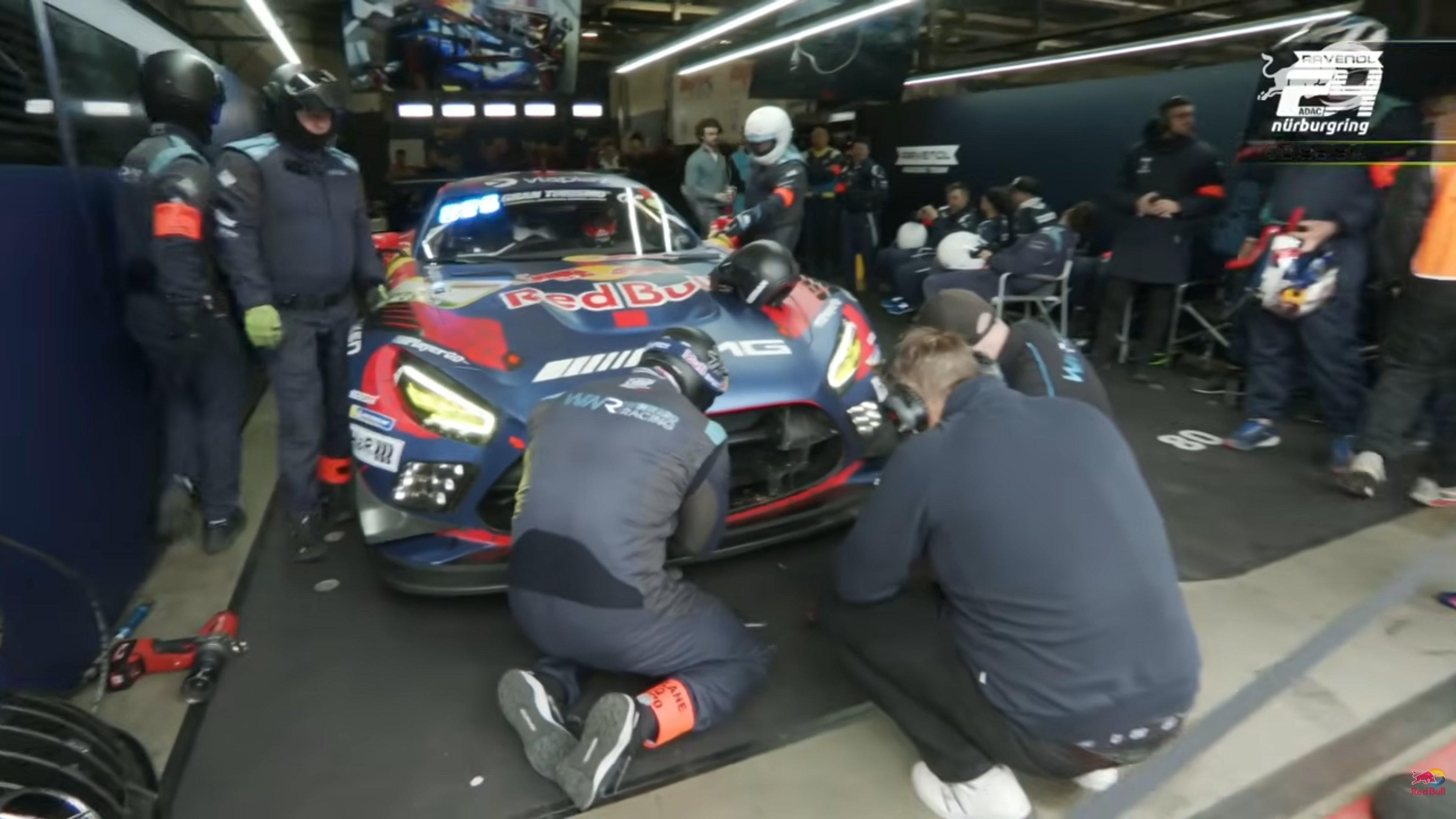 维斯塔潘回到维修区之后,队友奥尔坐进了赛车,但3号车组被推入P房内进行抢修,赛车前分离器(前唇)发生了损坏。纽博格林24小时耐力赛 纽博格林耐力系列赛赛车