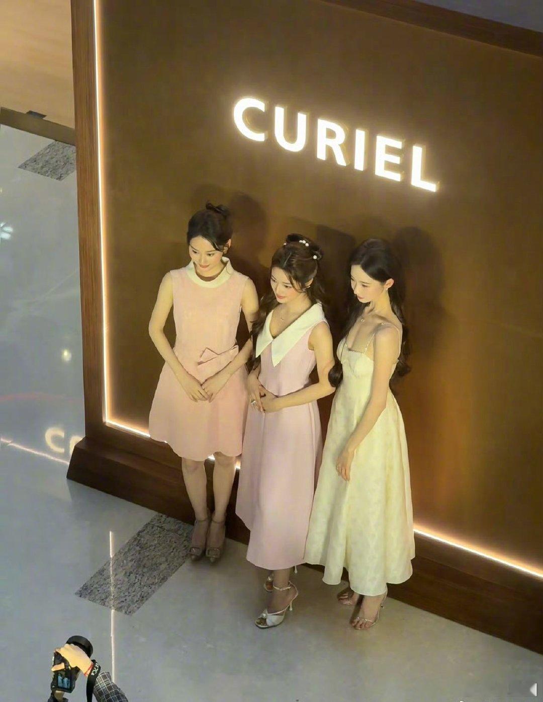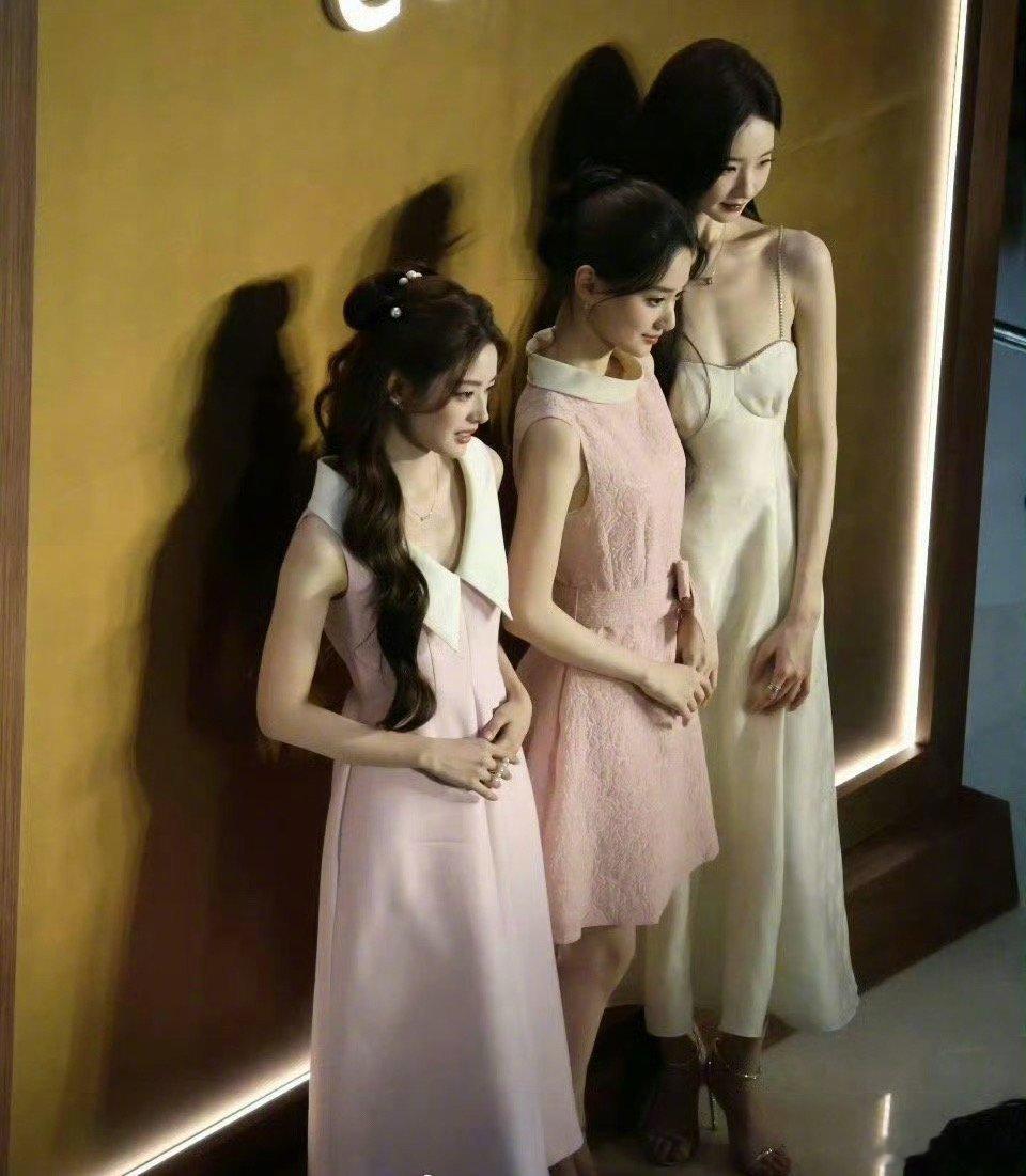 徐若晗张艺凡夏梦同框出席品牌活动,合照环节张艺凡却光着脚站在旁边~